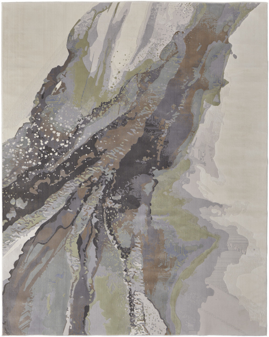 9' x 12' Green and Brown Abstract Power Loom Area Rug