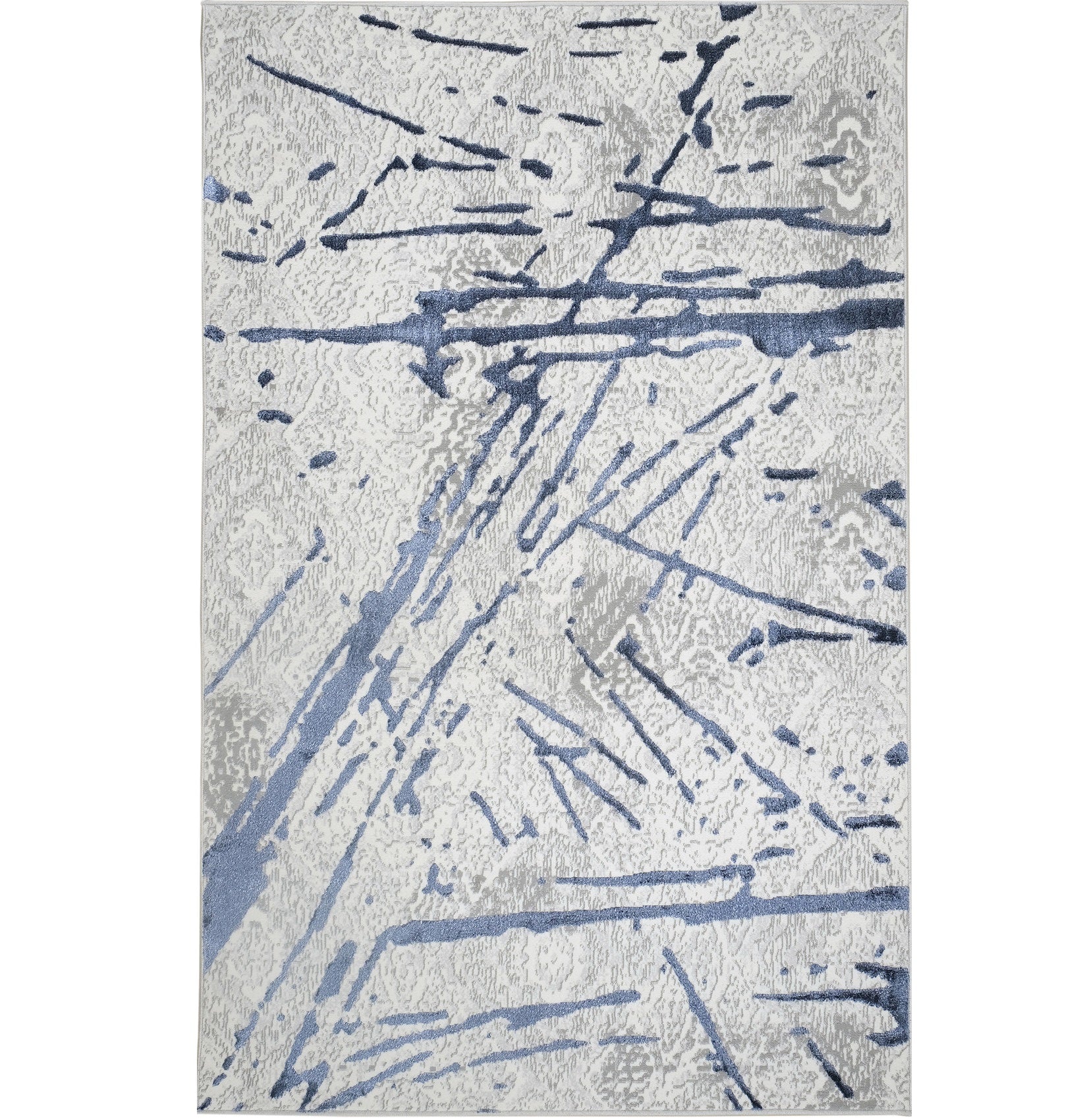 This 9-foot x 12-foot ivory and blue abstract area rug, is a great way to add warmth...
