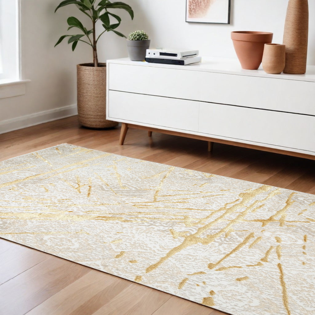 Set an inviting tone in your space with this 9-foot x 12-foot ivory and gold abstract area...