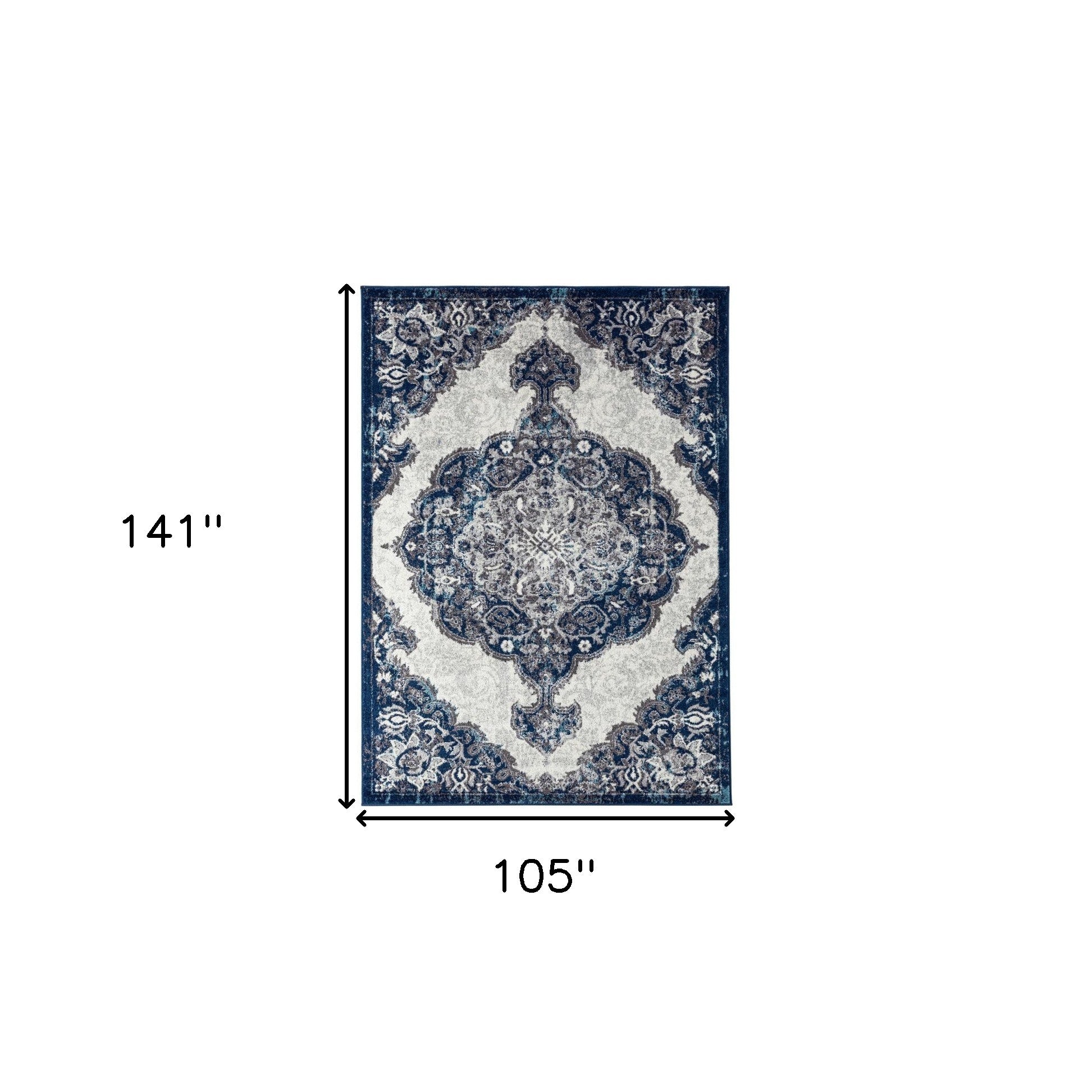 9' x 12' Navy Blue Medallion Power Loom Area Rug