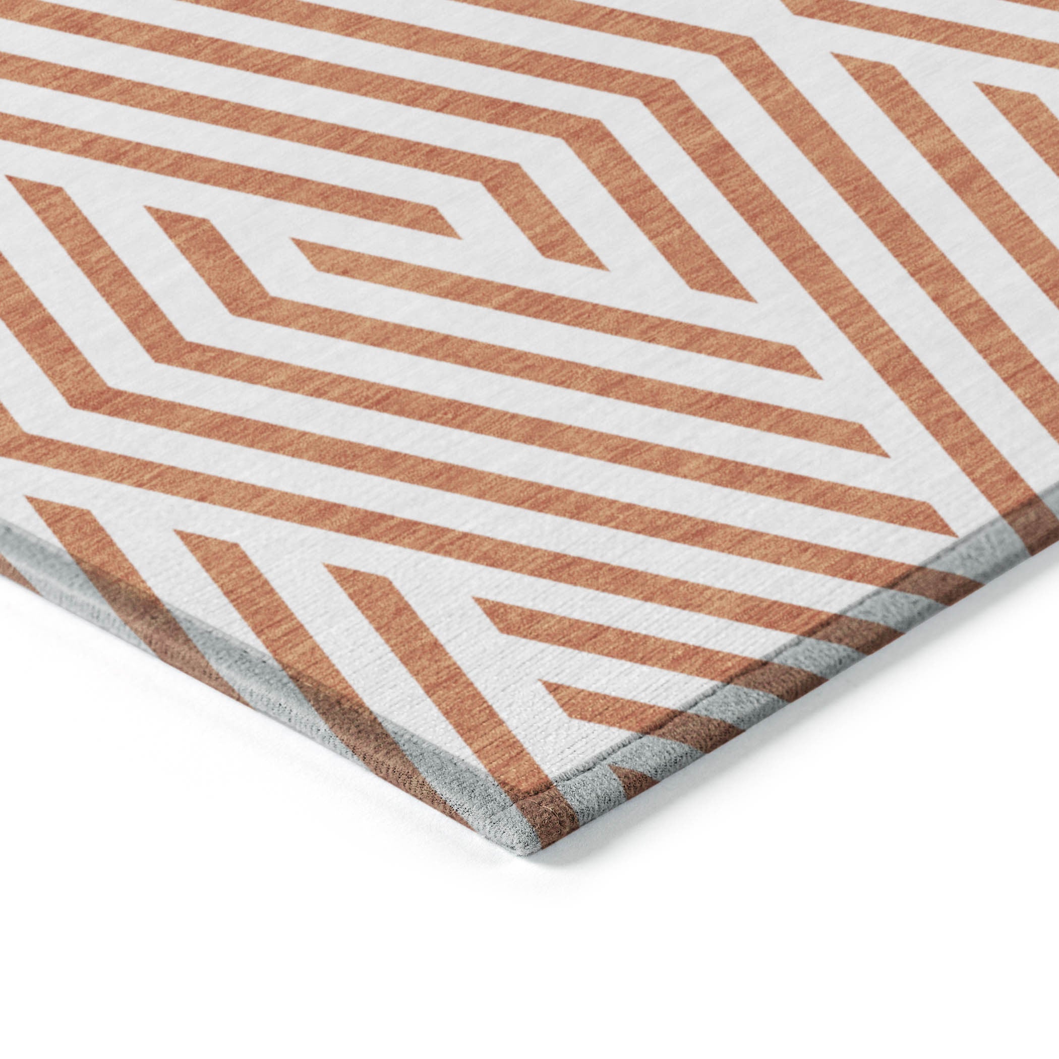 Add some artistry to your room with this 9-foot x 12-foot orange and white geometric washable stain...