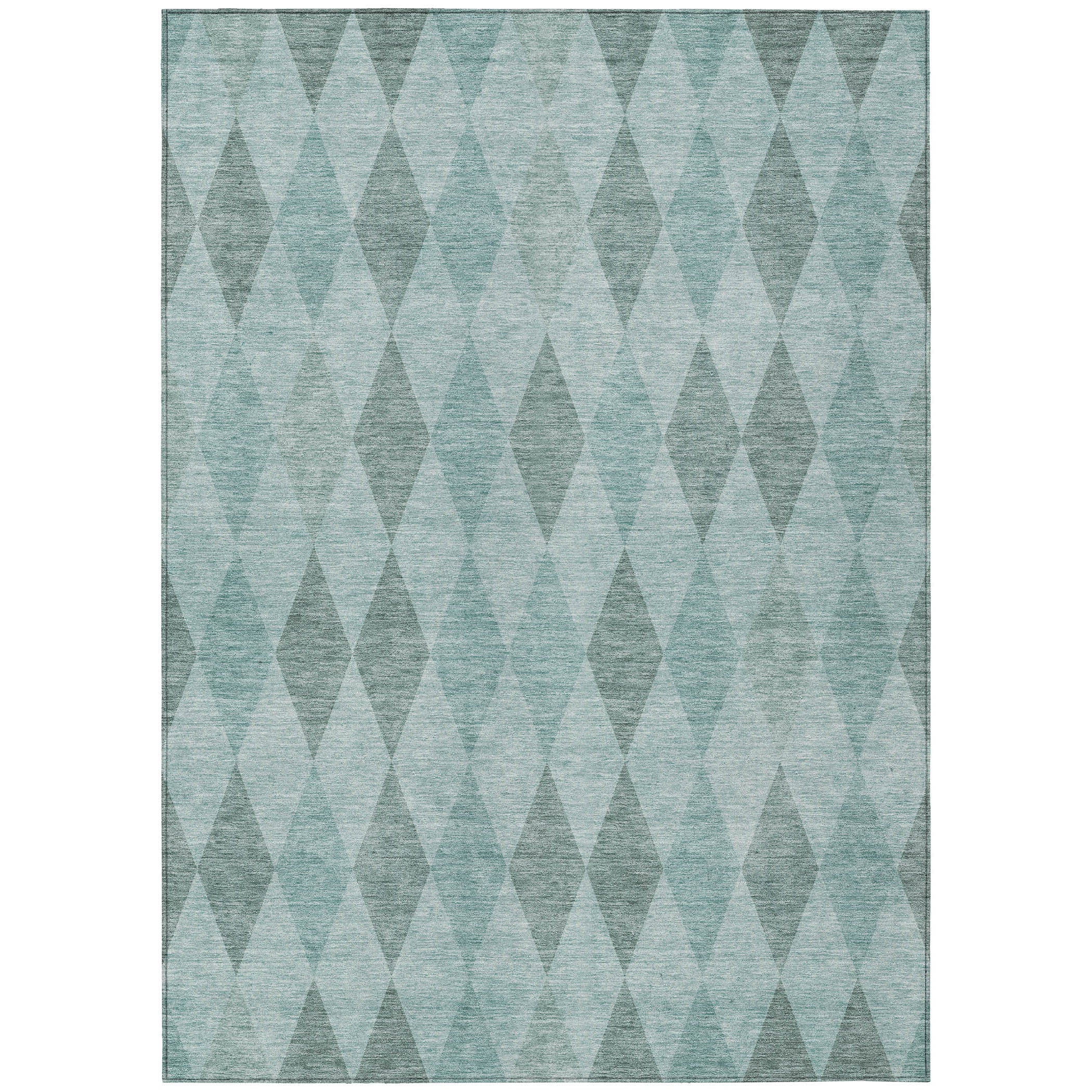 This 9-foot x 12-foot teal geometric washable stain resistant non skid indoor outdoor area rug, is a...