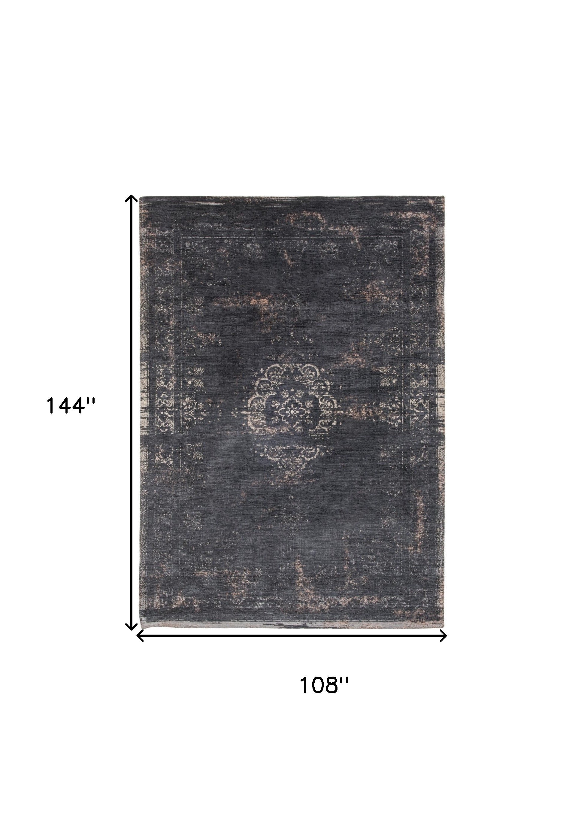 9' X 13' Gray and Black Medallion Non Skid Area Rug