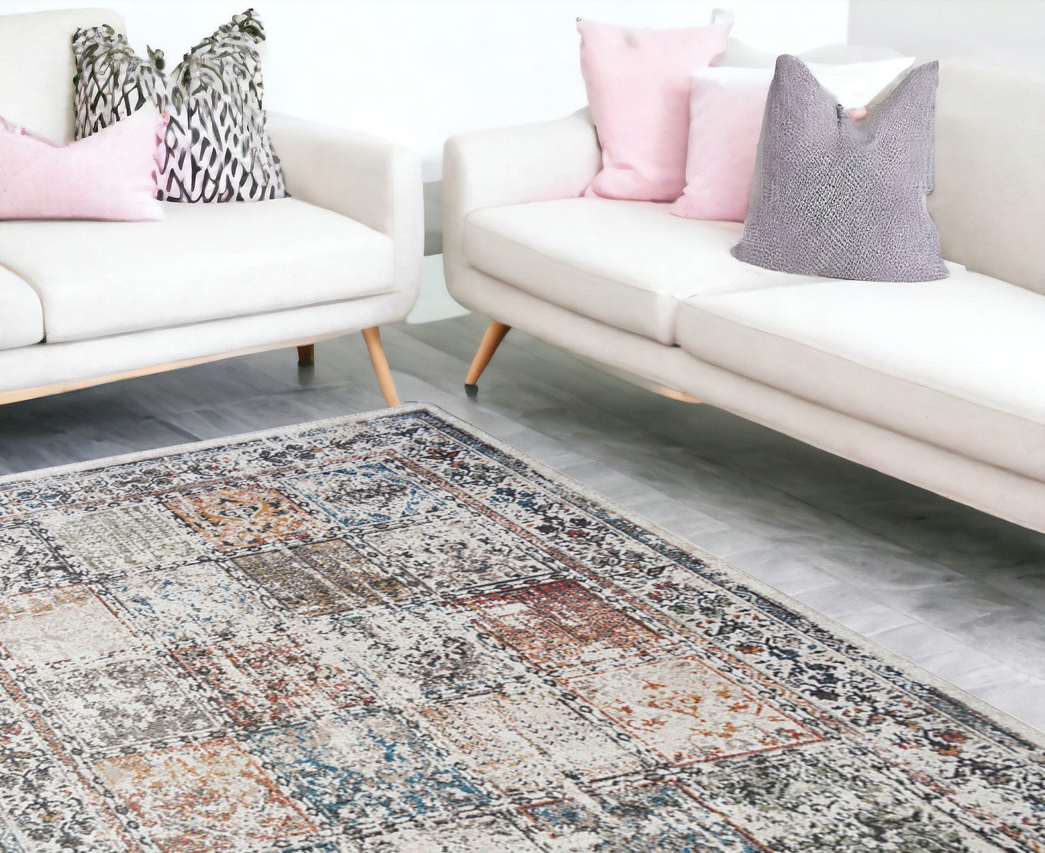 9' X 13' Ivory Oriental Distressed Area Rug With Fringe