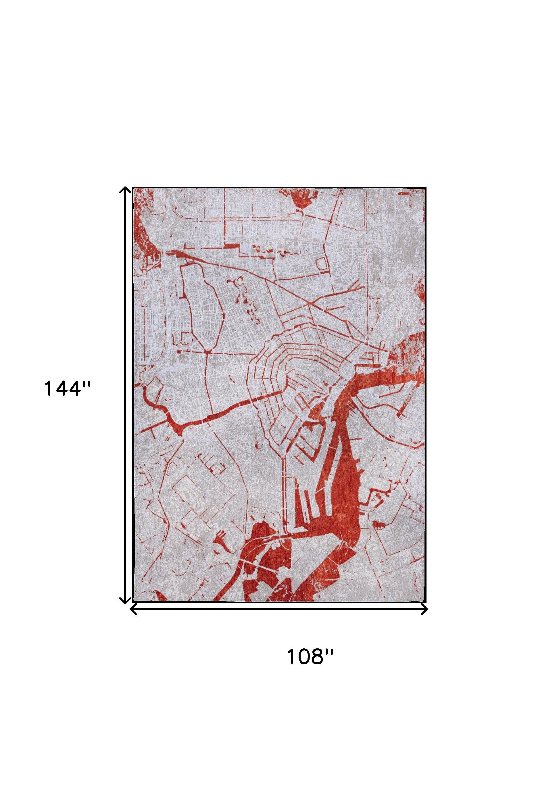 9' X 13' Red and White Abstract Non Skid Area Rug