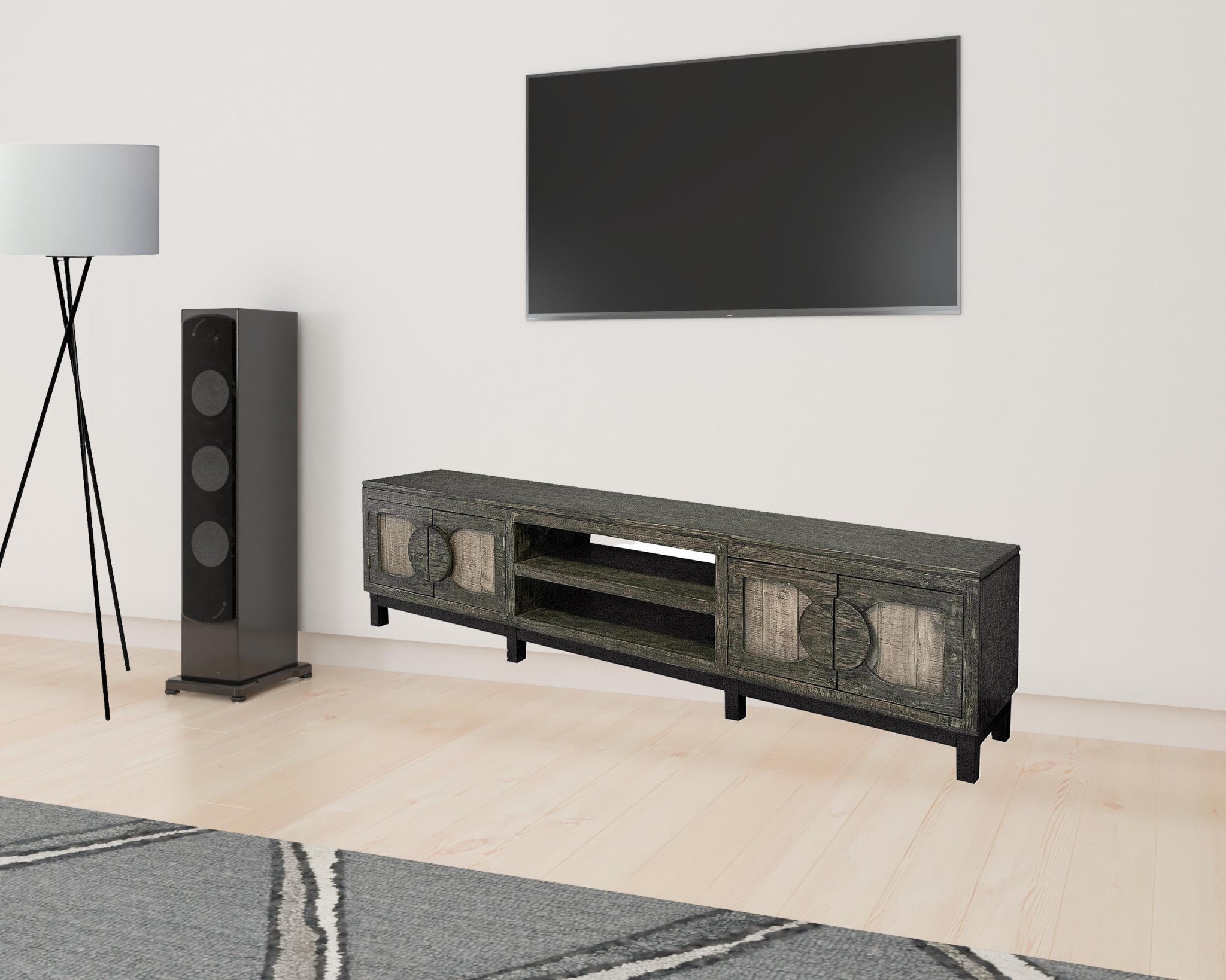 93" Brown Solid Wood Cabinet Enclosed Storage Distressed TV Stand