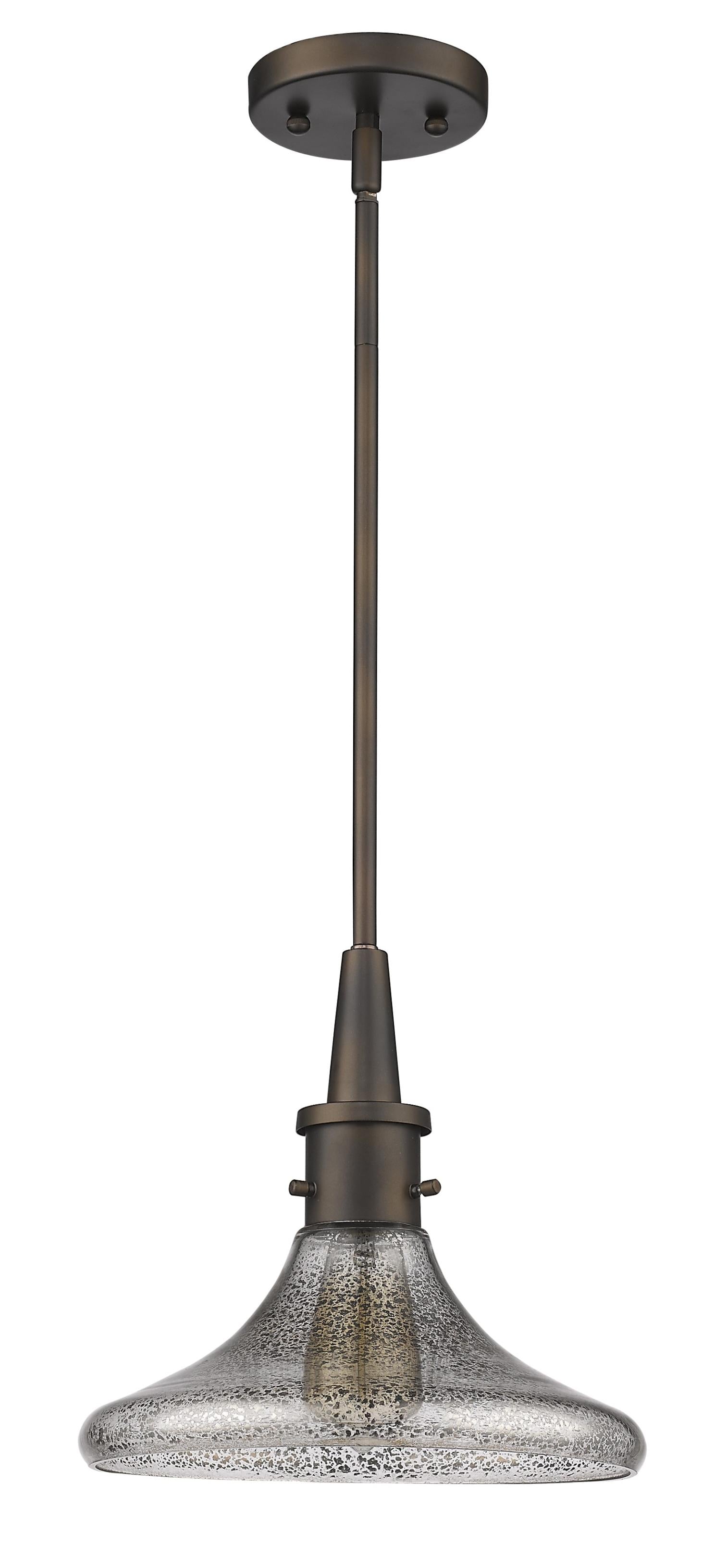 A modern take on a classic design, this Antique Bronze Hanging Light with Pebbled Glass Shade will...