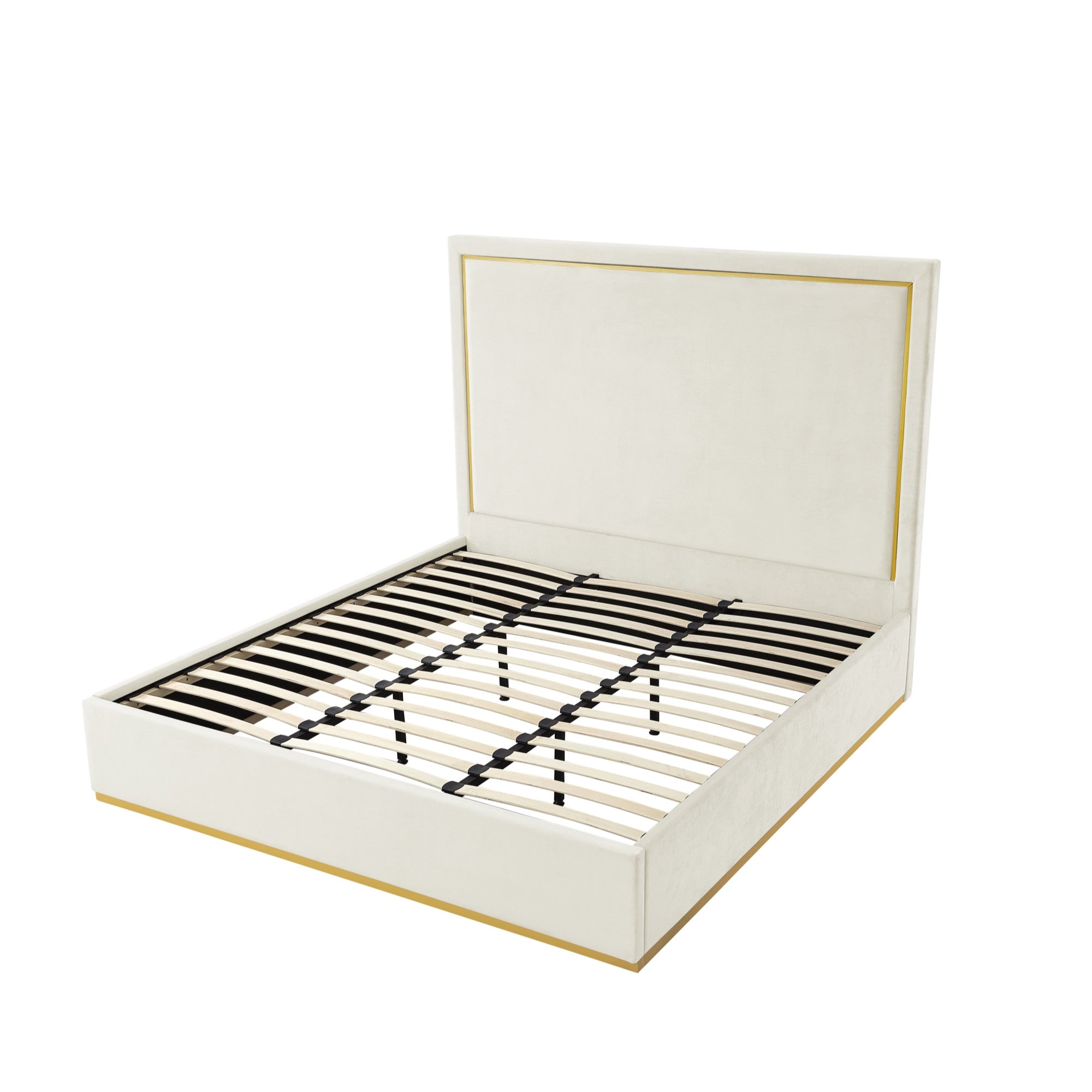 Beige Solid Wood Queen Upholstered Velvet Bed