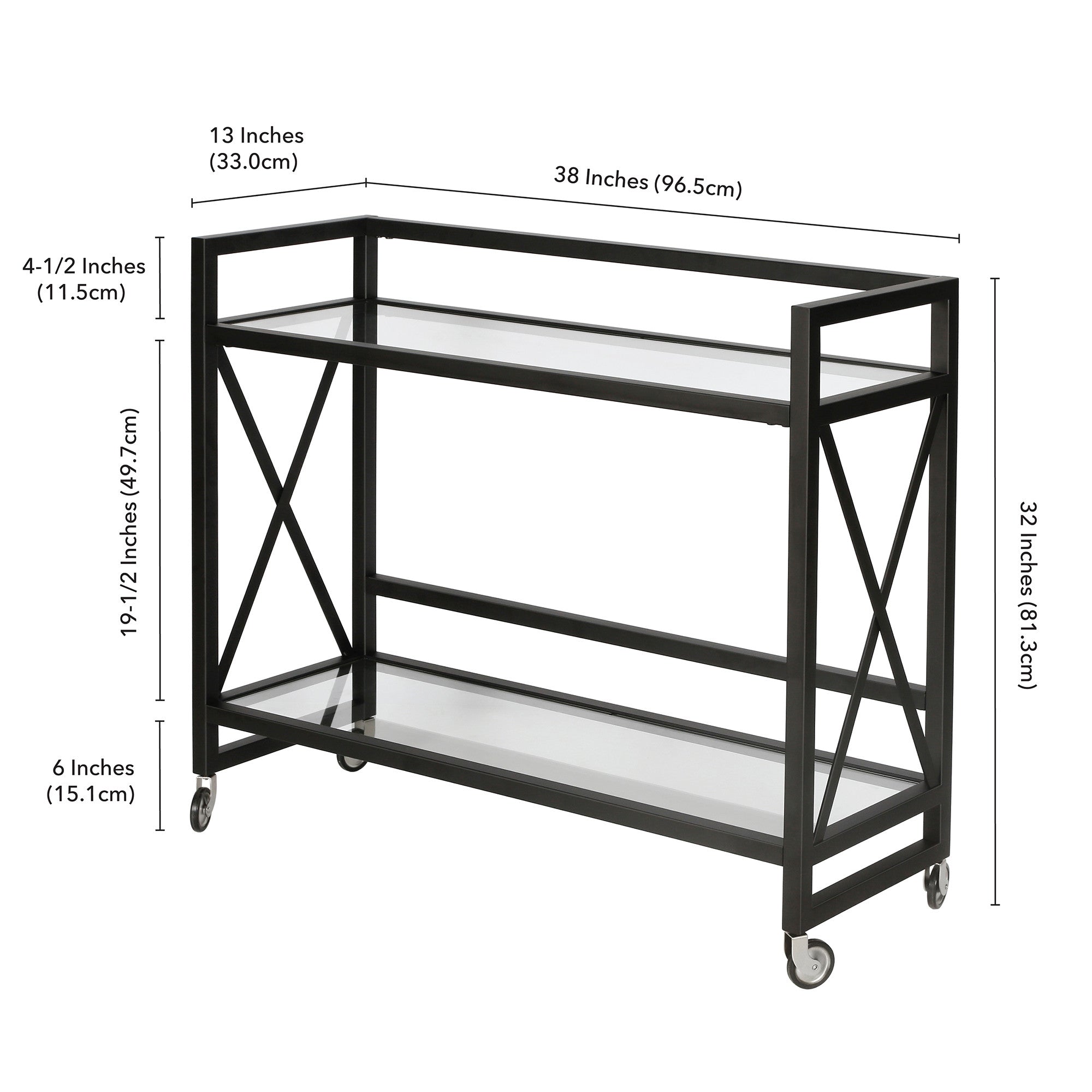 This black steel and glass rolling bar cart is the perfect addition to your modern decor. Crafted...