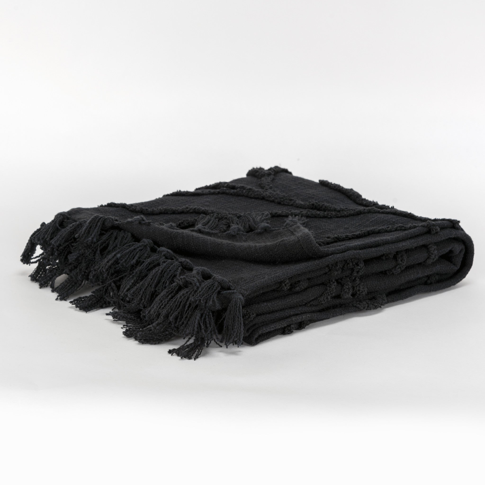 Black Woven 100% Woven Textured Cotton Throw Blanket
