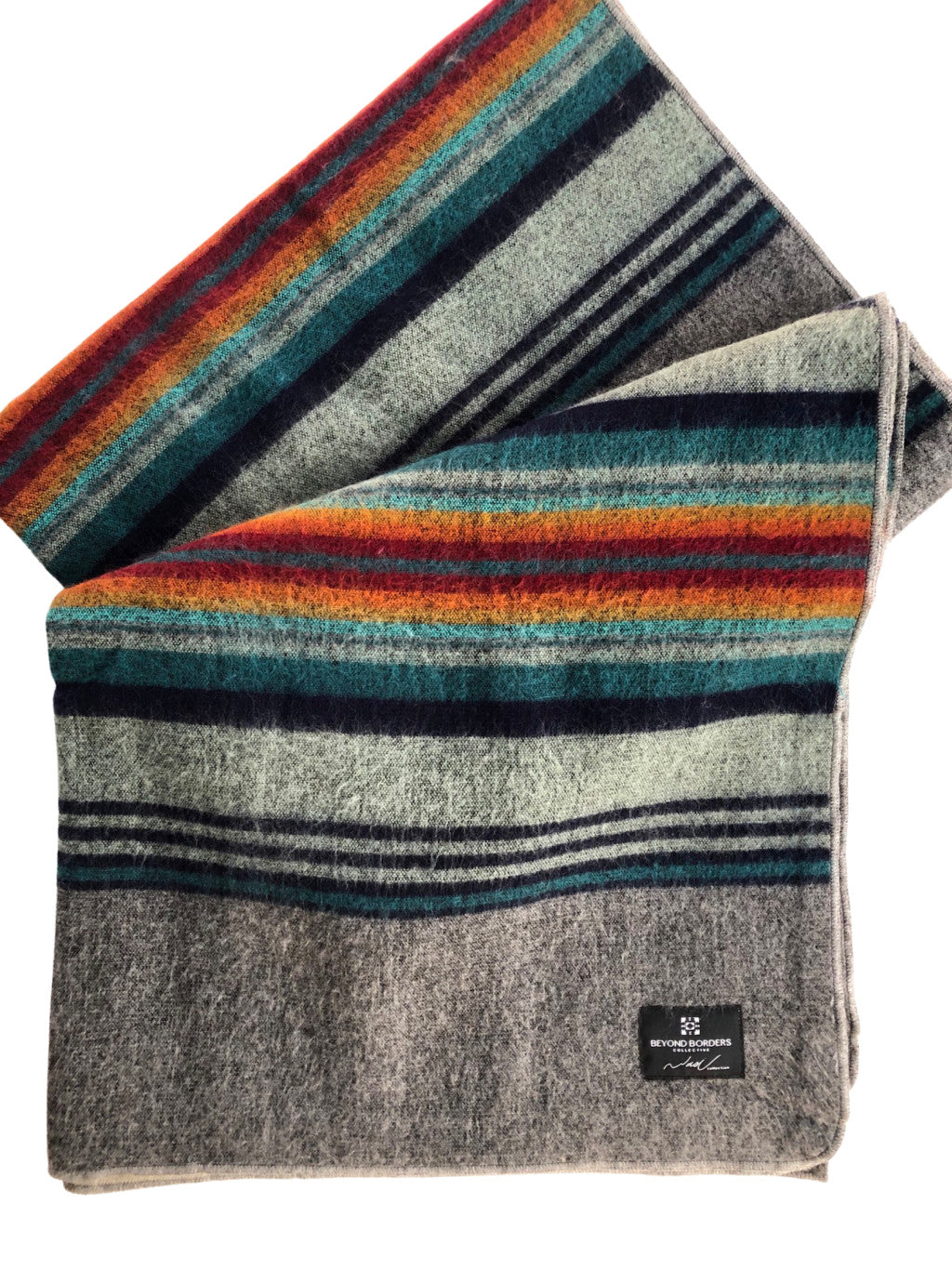 Blue And Gray Woven Acrylic Striped Weighted Queen Blanket