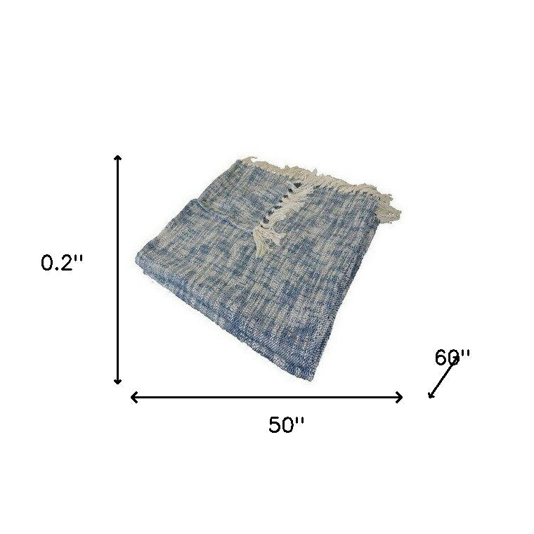 Blue and White Woven Cotton Solid Color Throw Blanket
