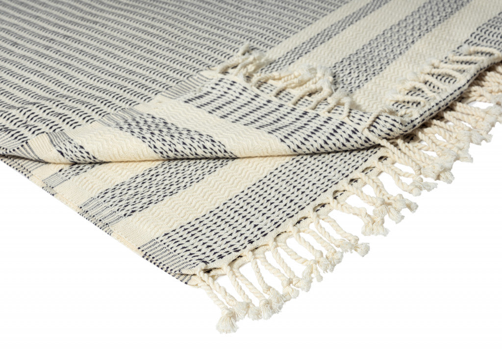 Blue and White Woven Cotton Striped Throw Blanket