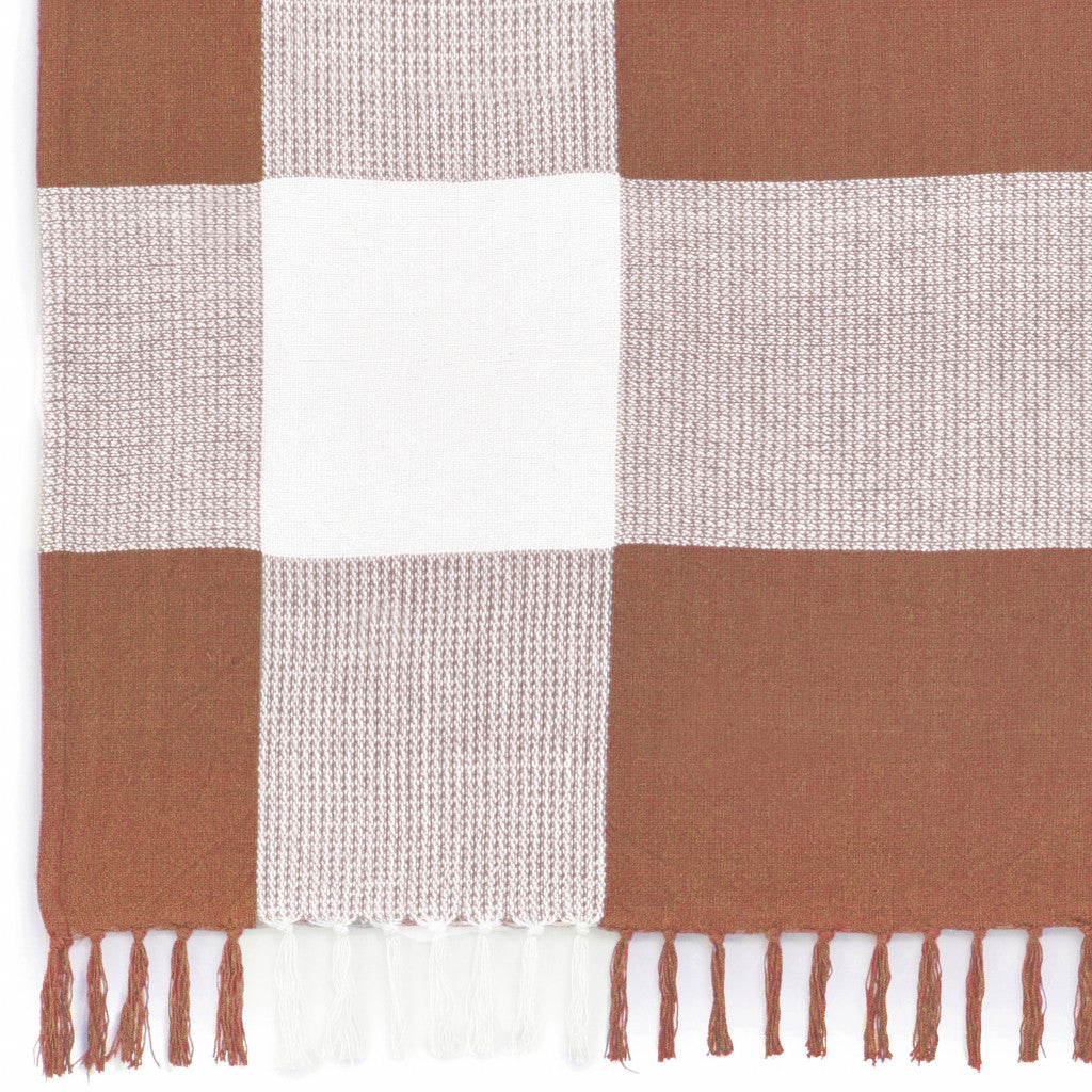 Bring warmth, comfort and style to your space with this brown and white woven cotton checkered throw...
