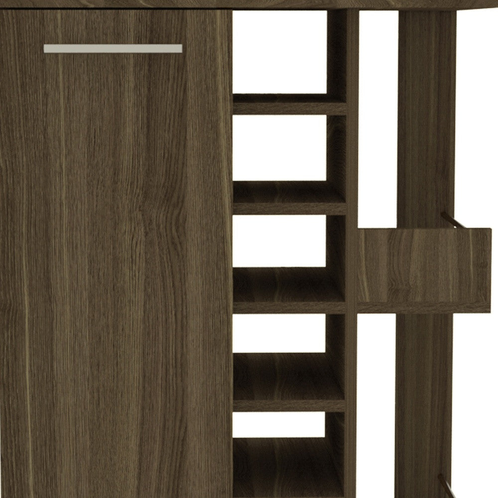 This brown rolling bar cart with wine storage is the perfect addition to your contemporary home decor....