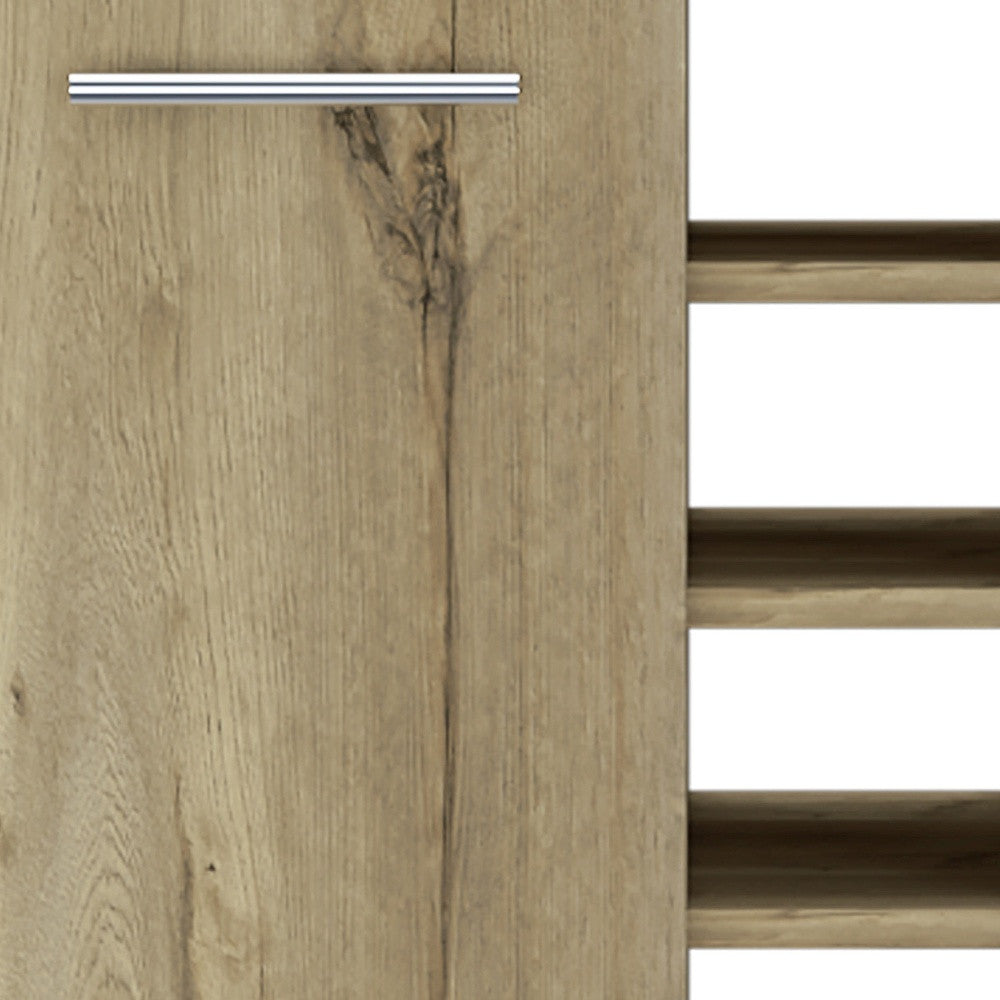 This brown rolling bar cart with wine storage is a versatile piece that combines style and functionality....
