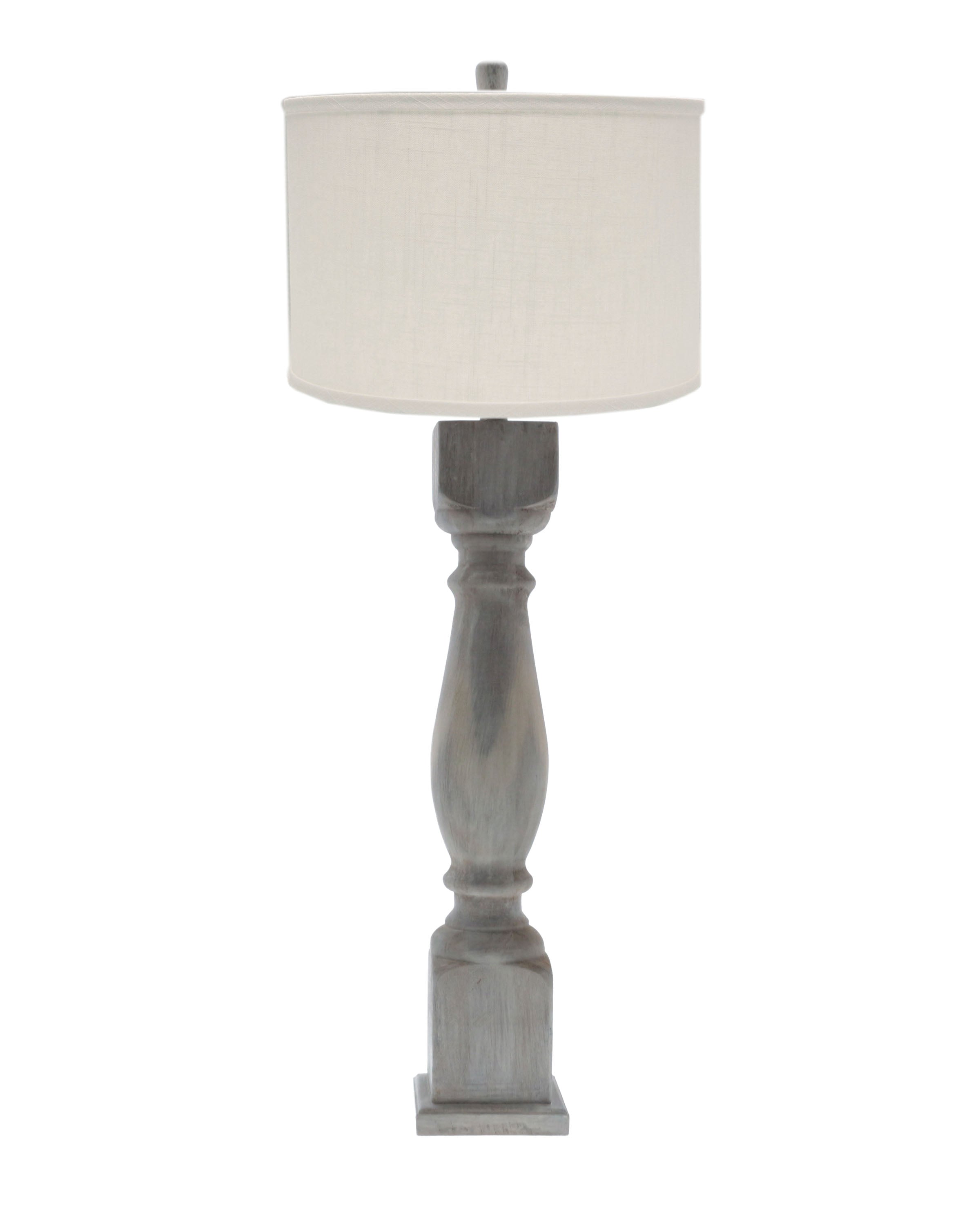Brown Washed Wood Finish Table Lamp With Ivory Linen Shade