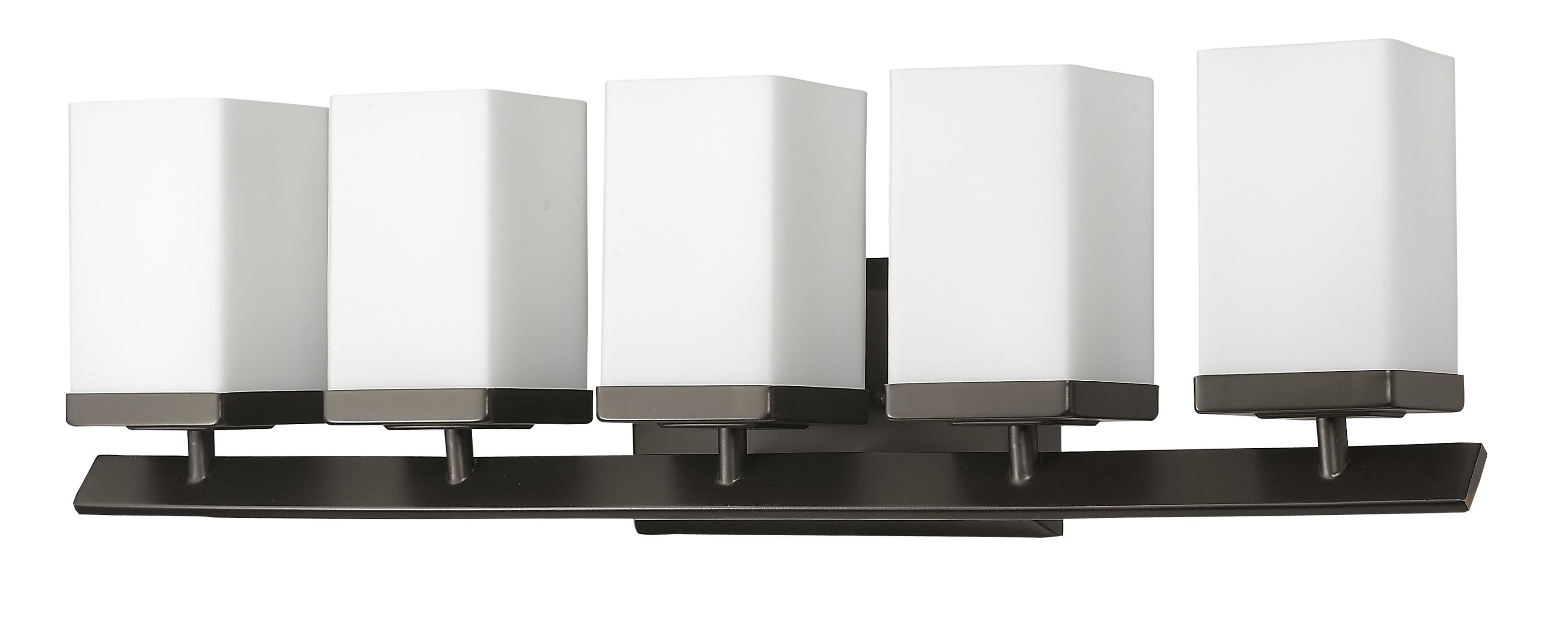 Burgundy 5-Light Oil-Rubbed Bronze Vanity Light With Etched Glass Shades