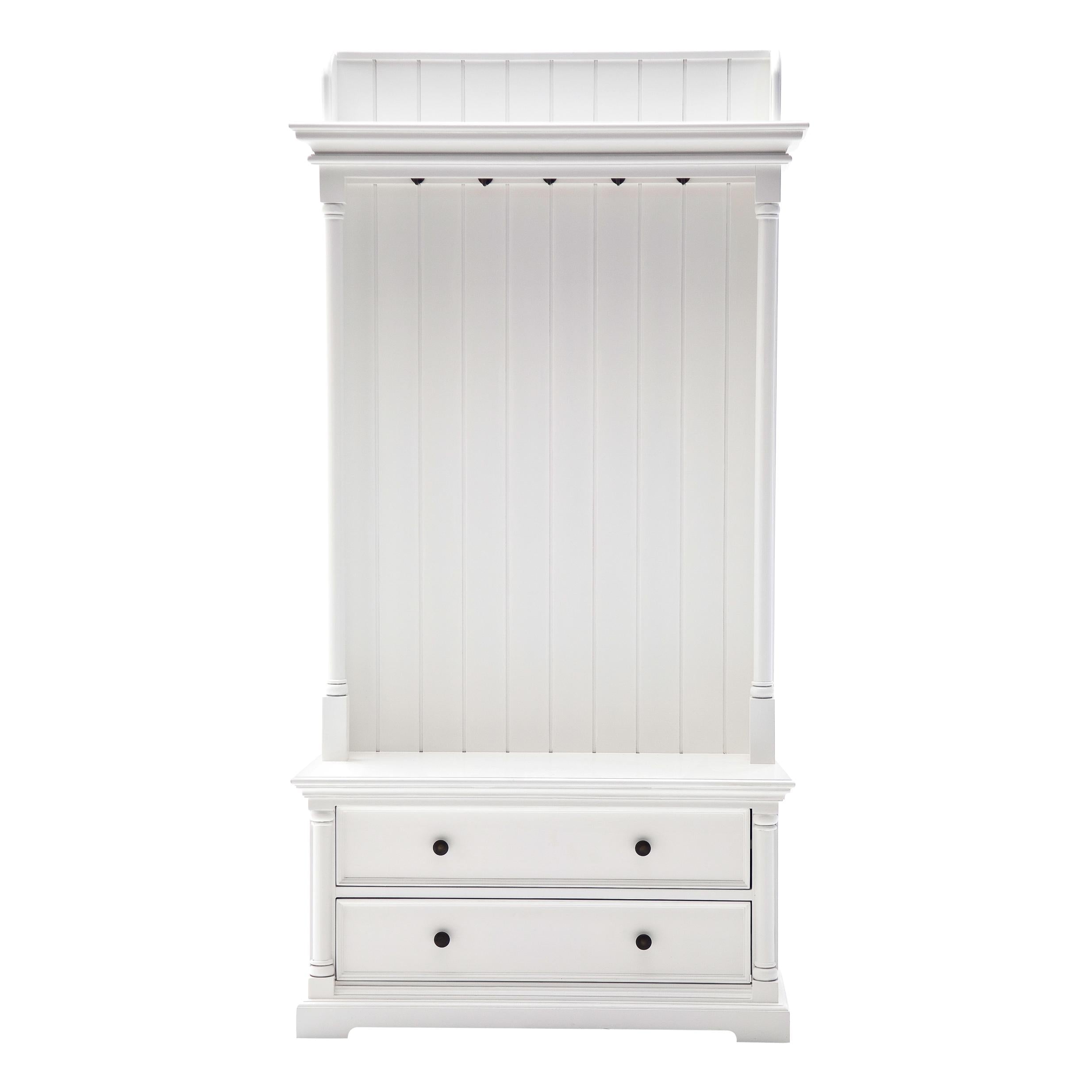Classic White Hall Tree Coat Rack with Drawers