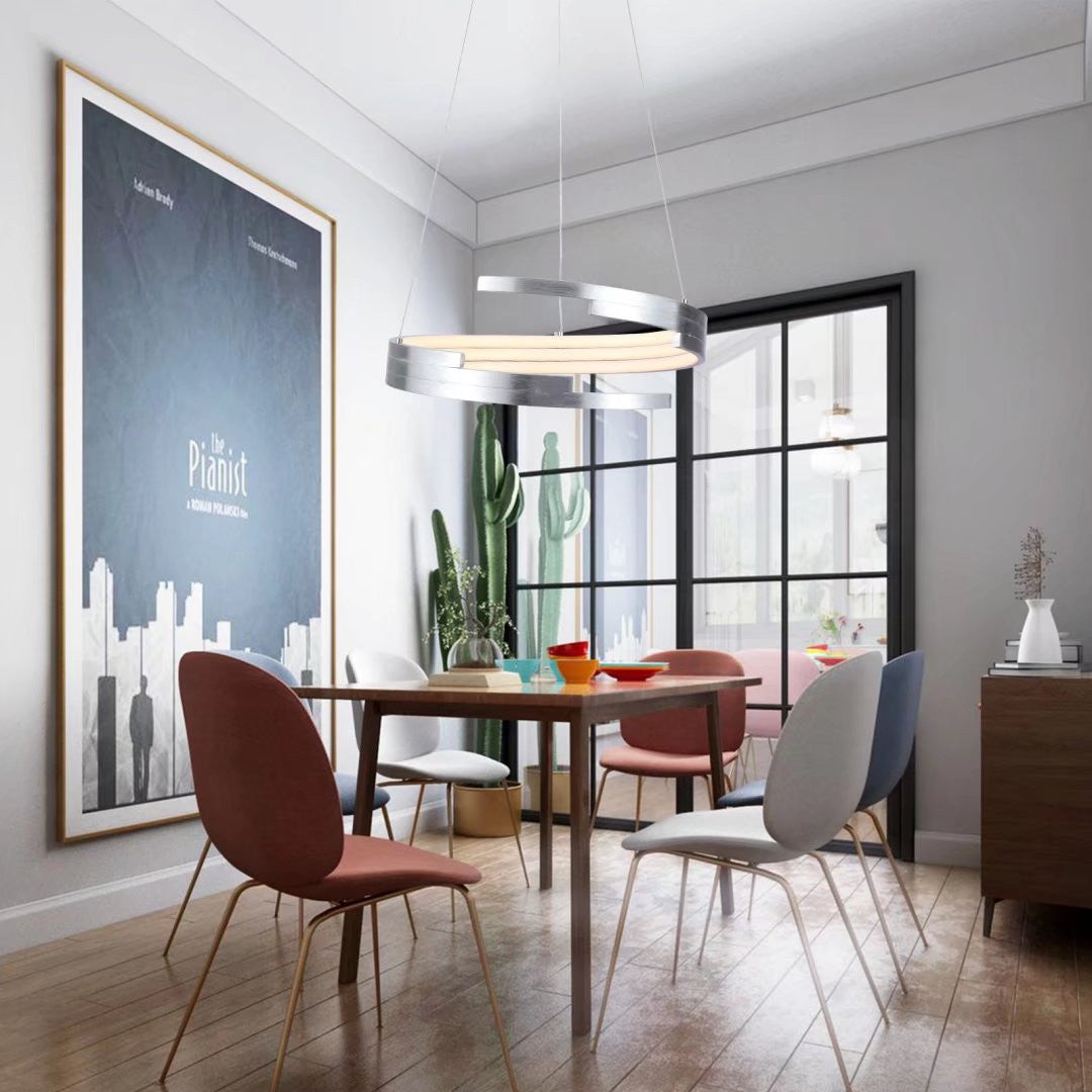 Contemporary Silver LED Circular Spiral Chandelier
