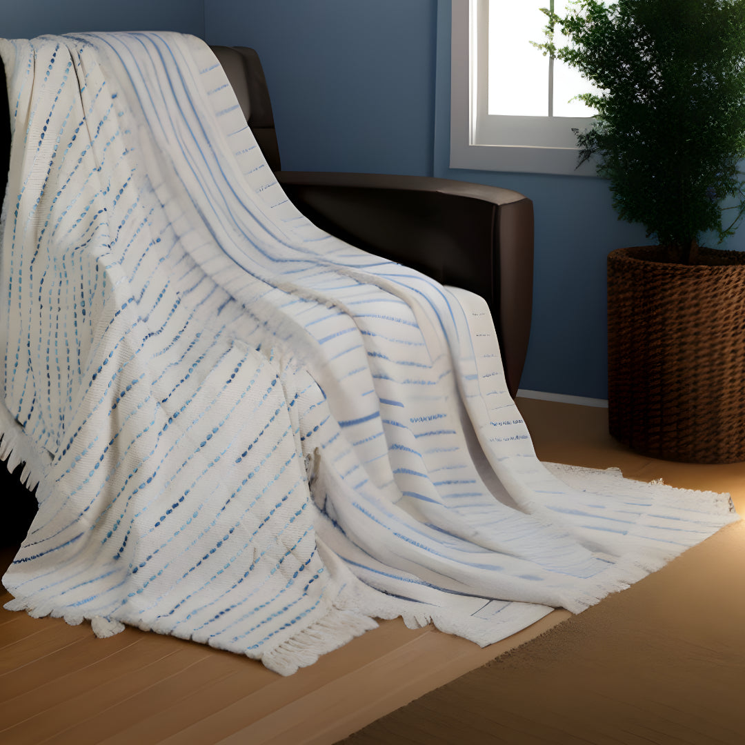 This cream woven cotton striped throw blanket is an essential for any cozy abode. Featuring beautiful embroidery,...