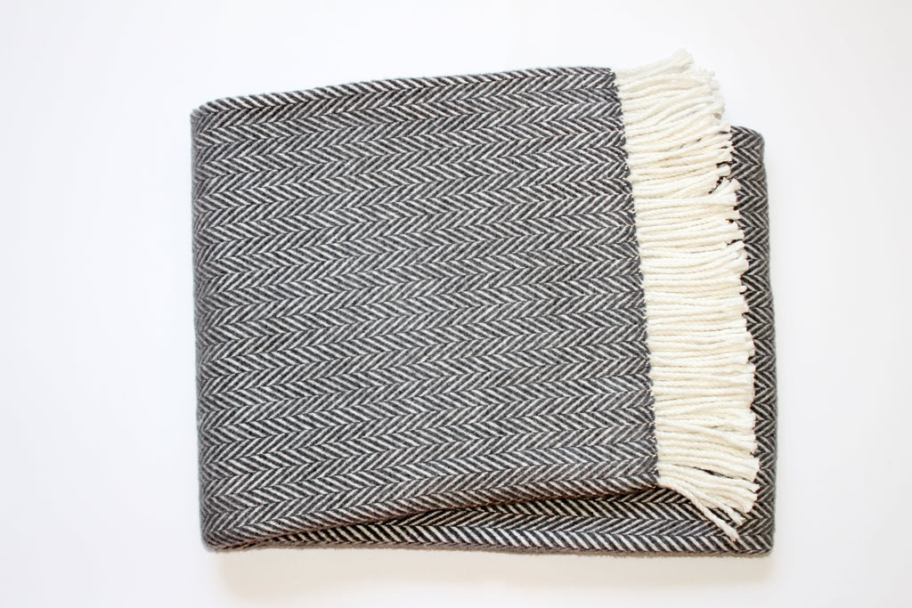 Dark Grey and White Dreamy Soft Herringbone Throw Blanket