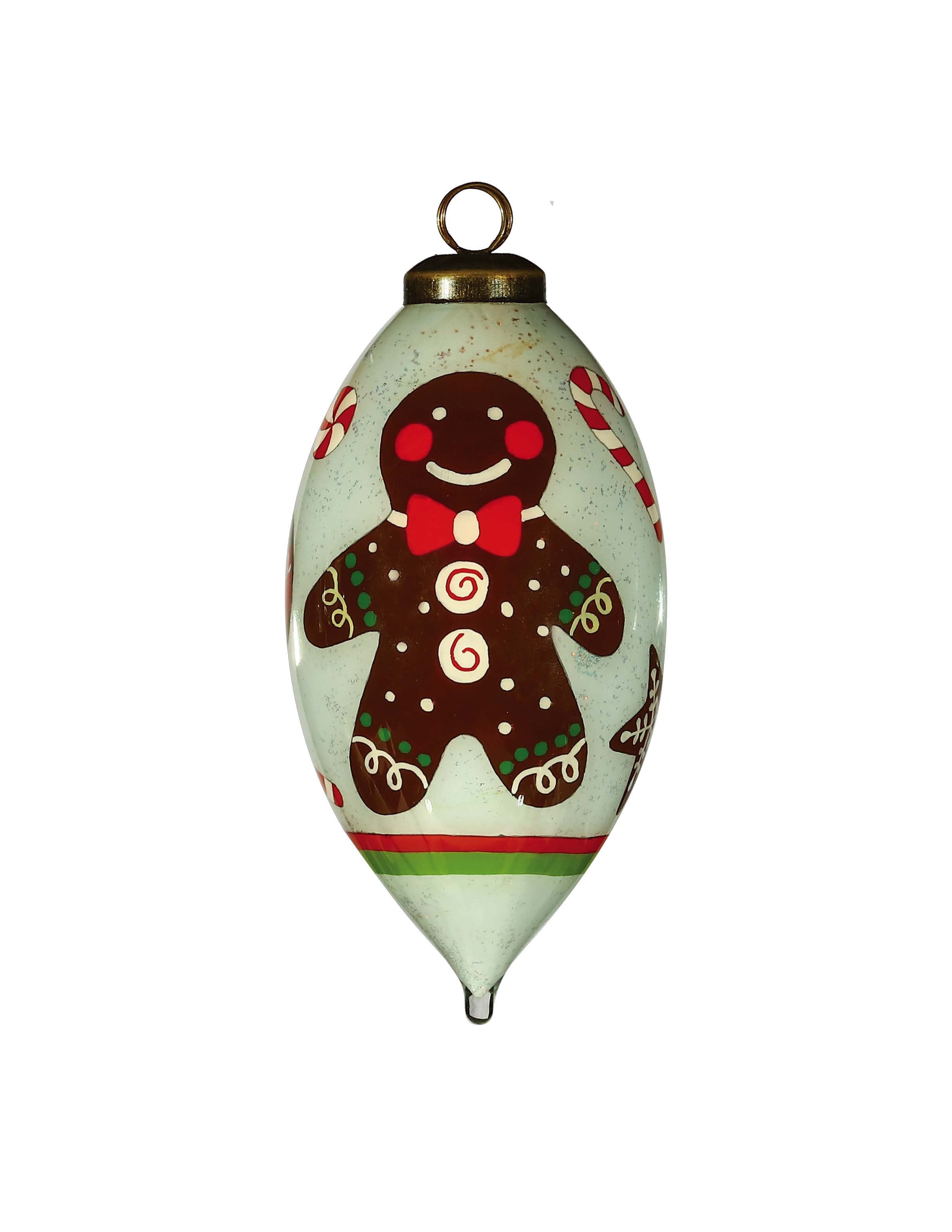 Festive Glitter Gingerbread Man Hand Painted Mouth Blown Glass Ornament