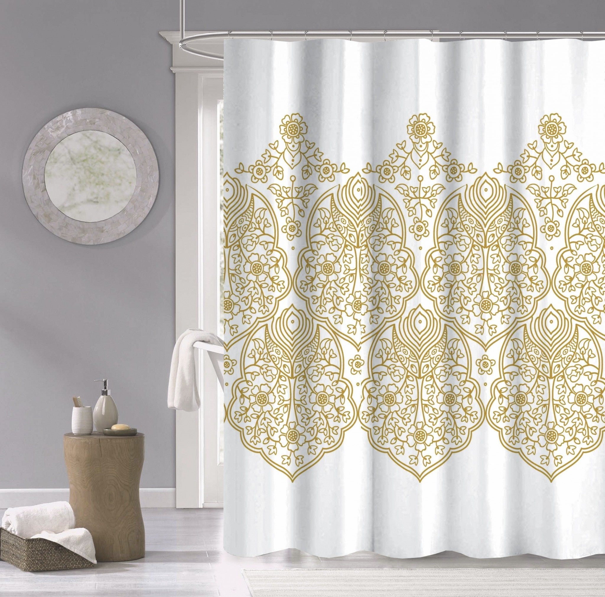 Entertain your sense of aesthetics with this Gold Decorative Medallion Shower Curtain that exhibits a retro-modern elegance...