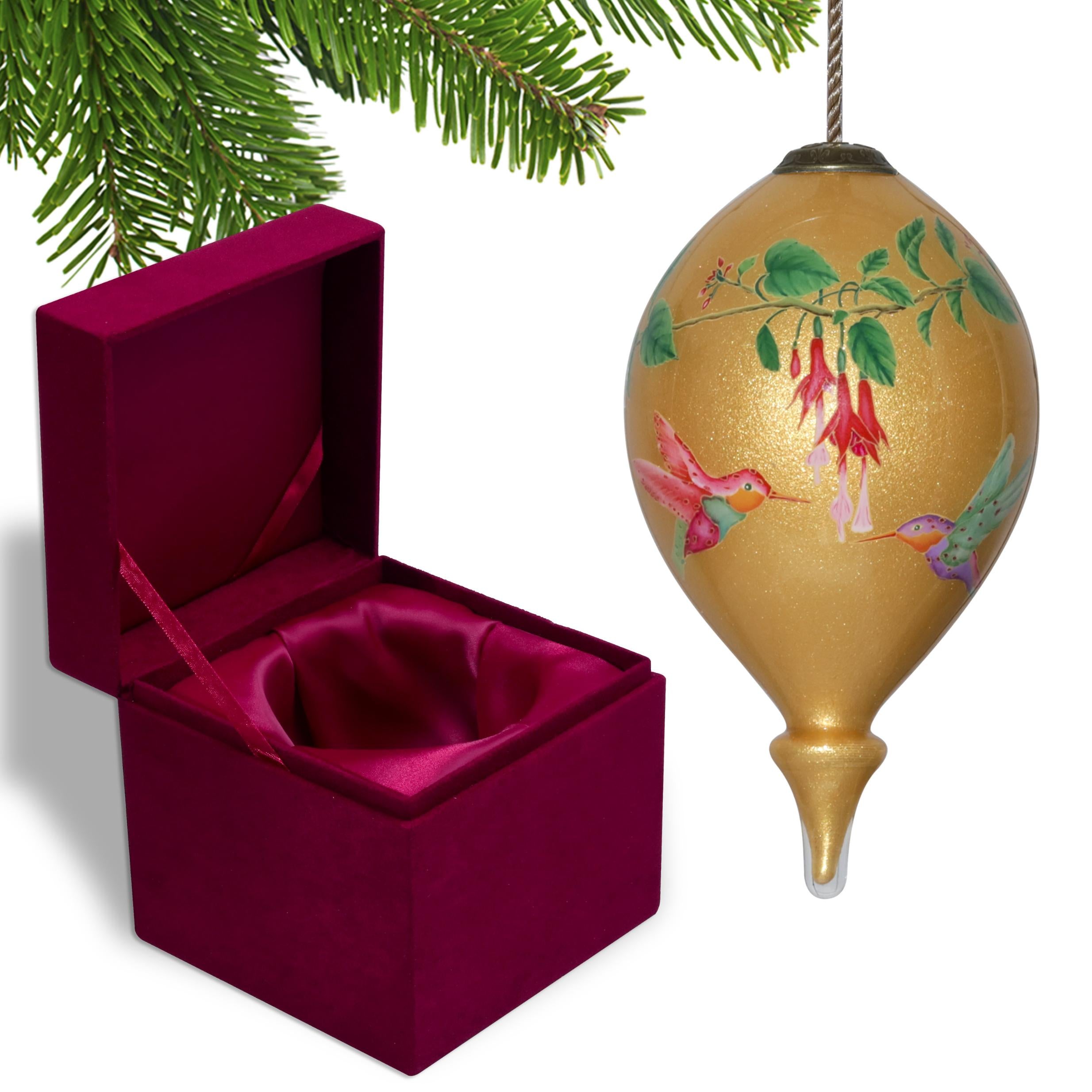 Brighten your home in an elegant artistic Christmas spirit with the Golden Flowers and Hummingbirds Hand Painted...