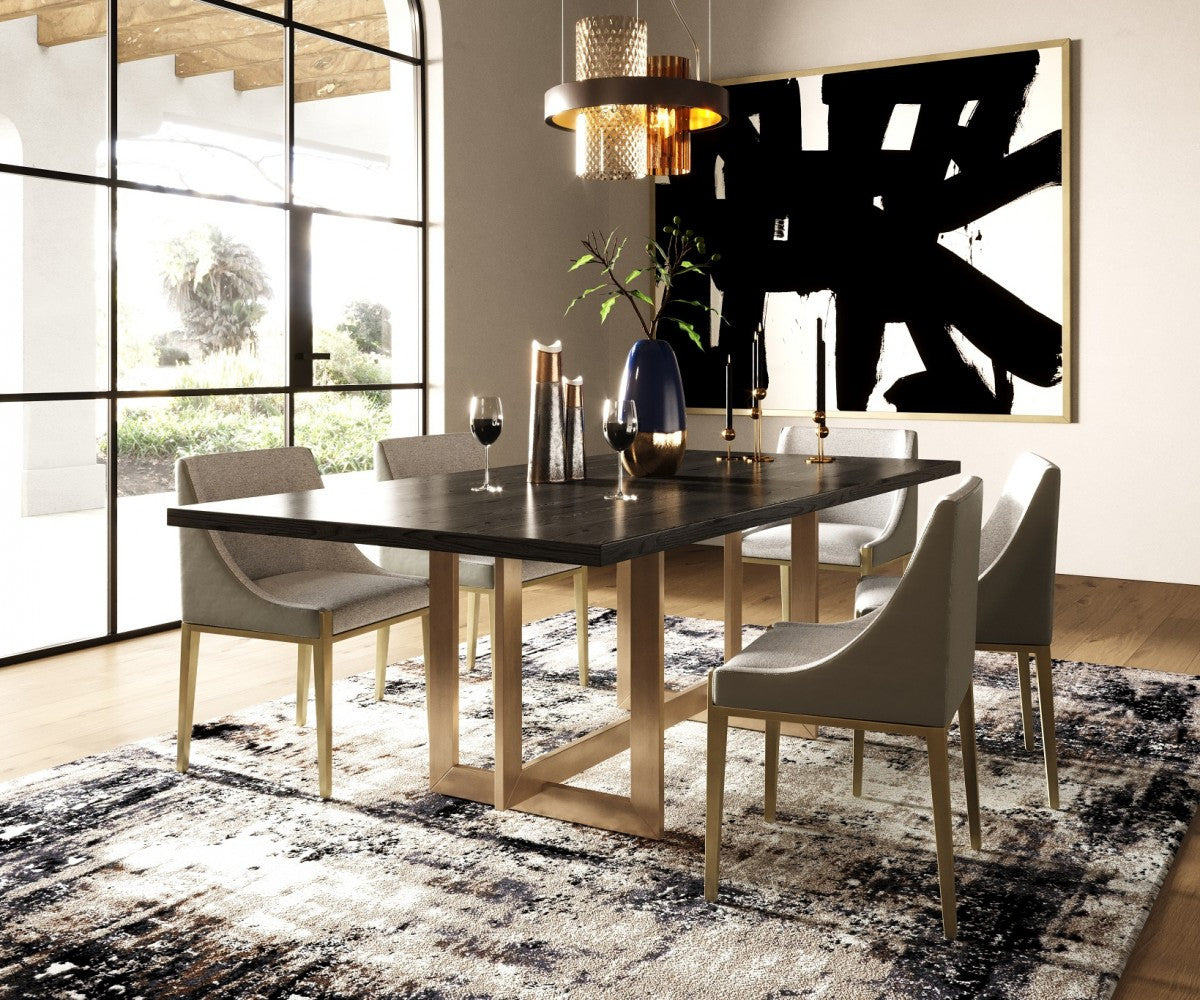Make your dining room stand out with the gray and brass upholstered fabric dining side chair. This...