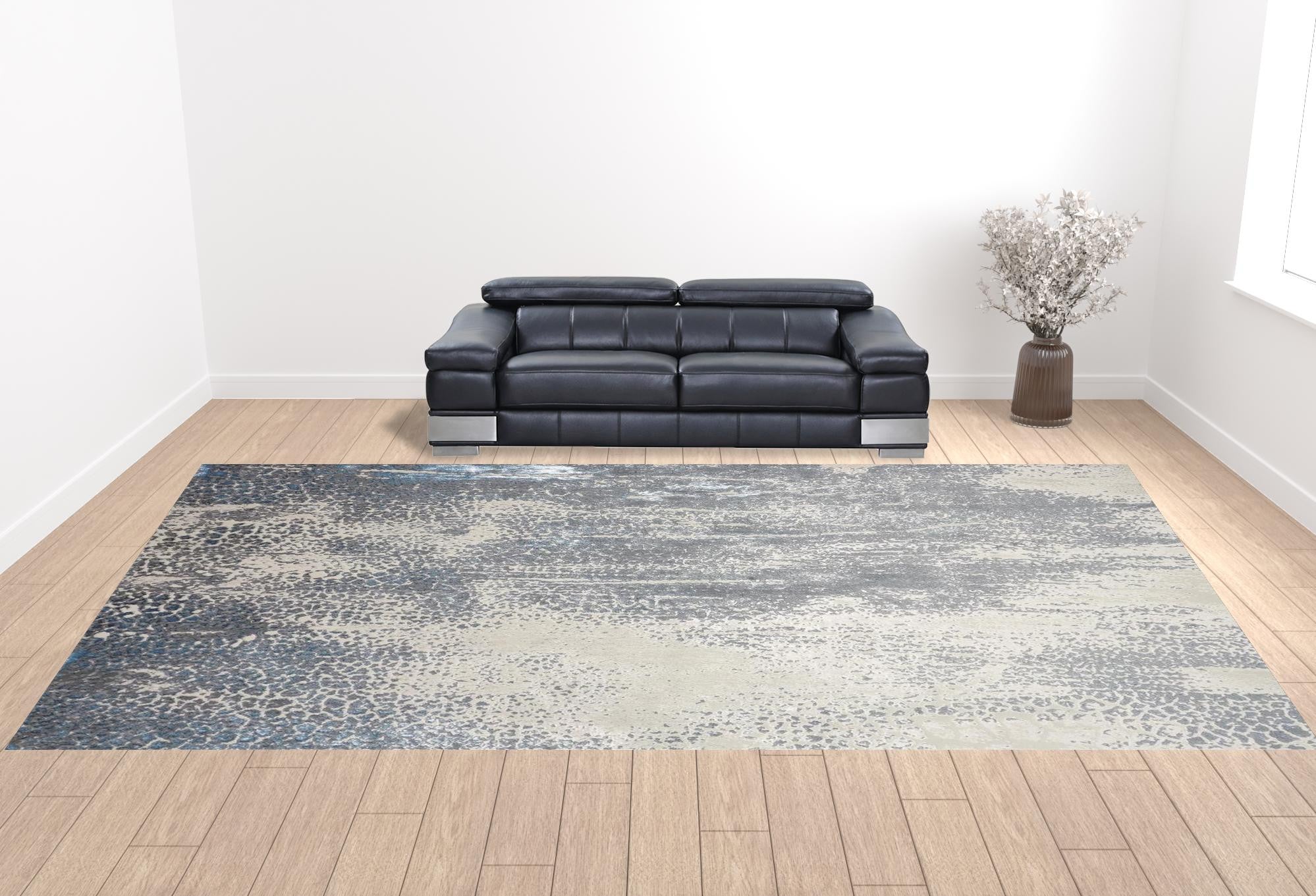 Set an inviting tone in your space with this gray blue and ivory abstract area rug. This...