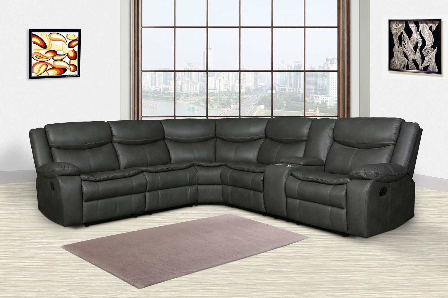 Gray Faux Leather Reclining L Shaped Corner Sectional
