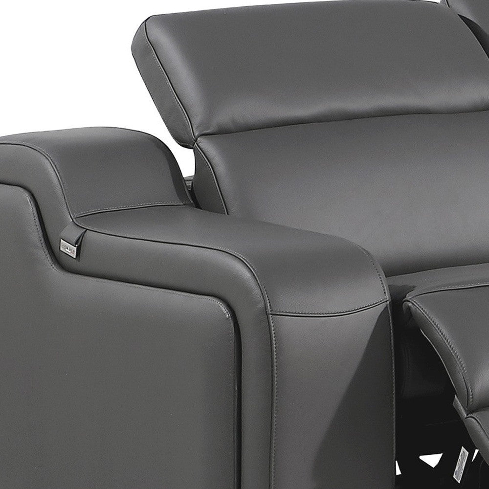 Gray Italian Leather Power Reclining Curved Five Piece Corner Sectional