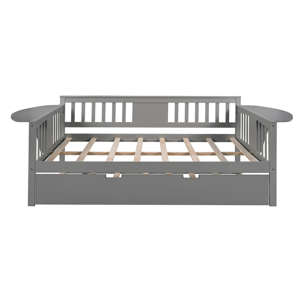 The gray solid and manufactured wood bed with trundle is the ultimate combination for your bedroom of...