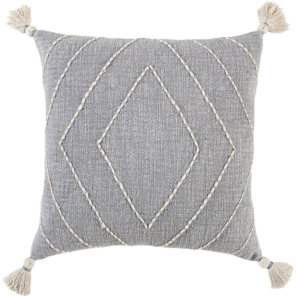 Lend a bohemian essence into your modern space with this Gray White Diamond Kantha Stitched Throw Pillow....