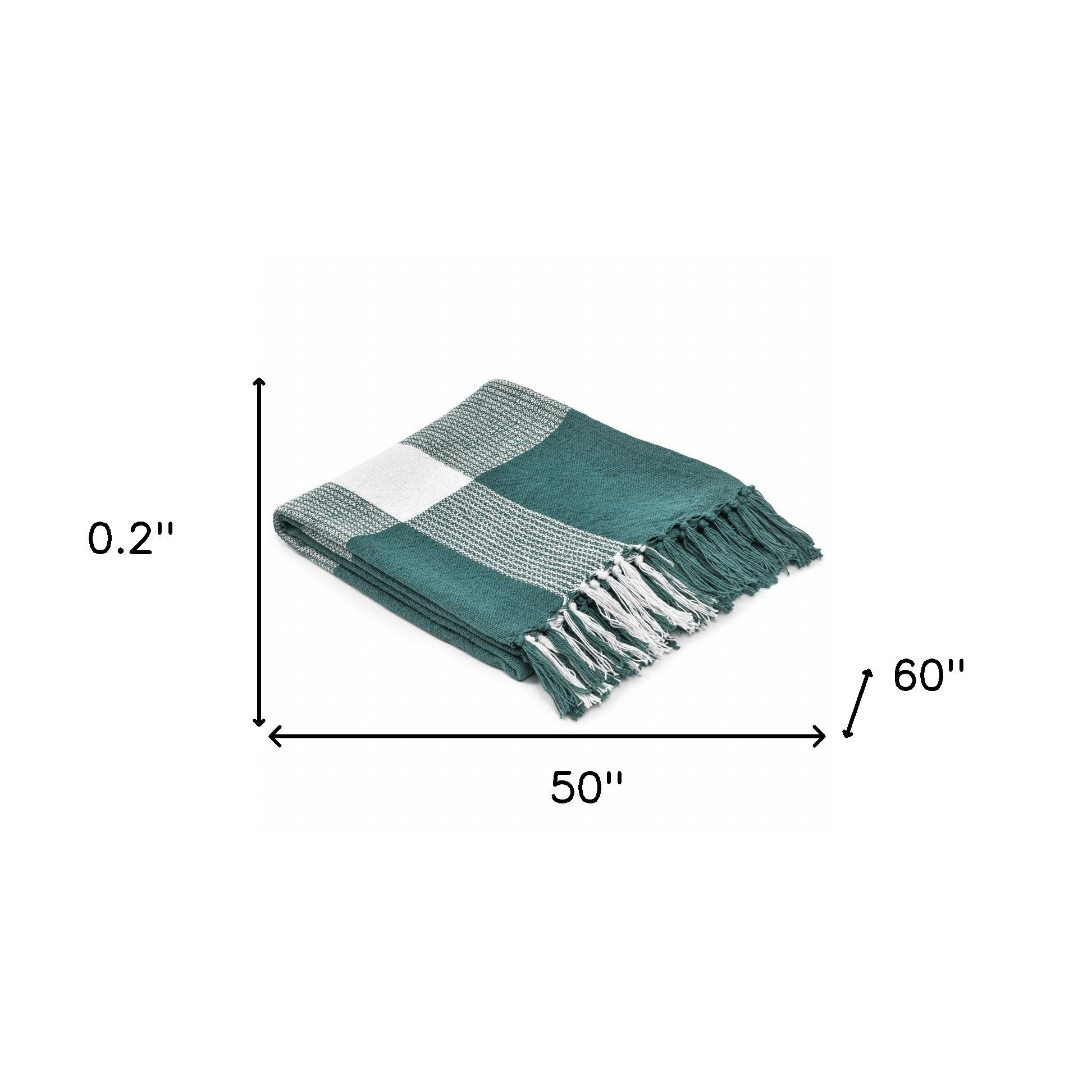 Bring warmth, comfort and style to your space with this green woven cotton checkered throw blanket. Features...