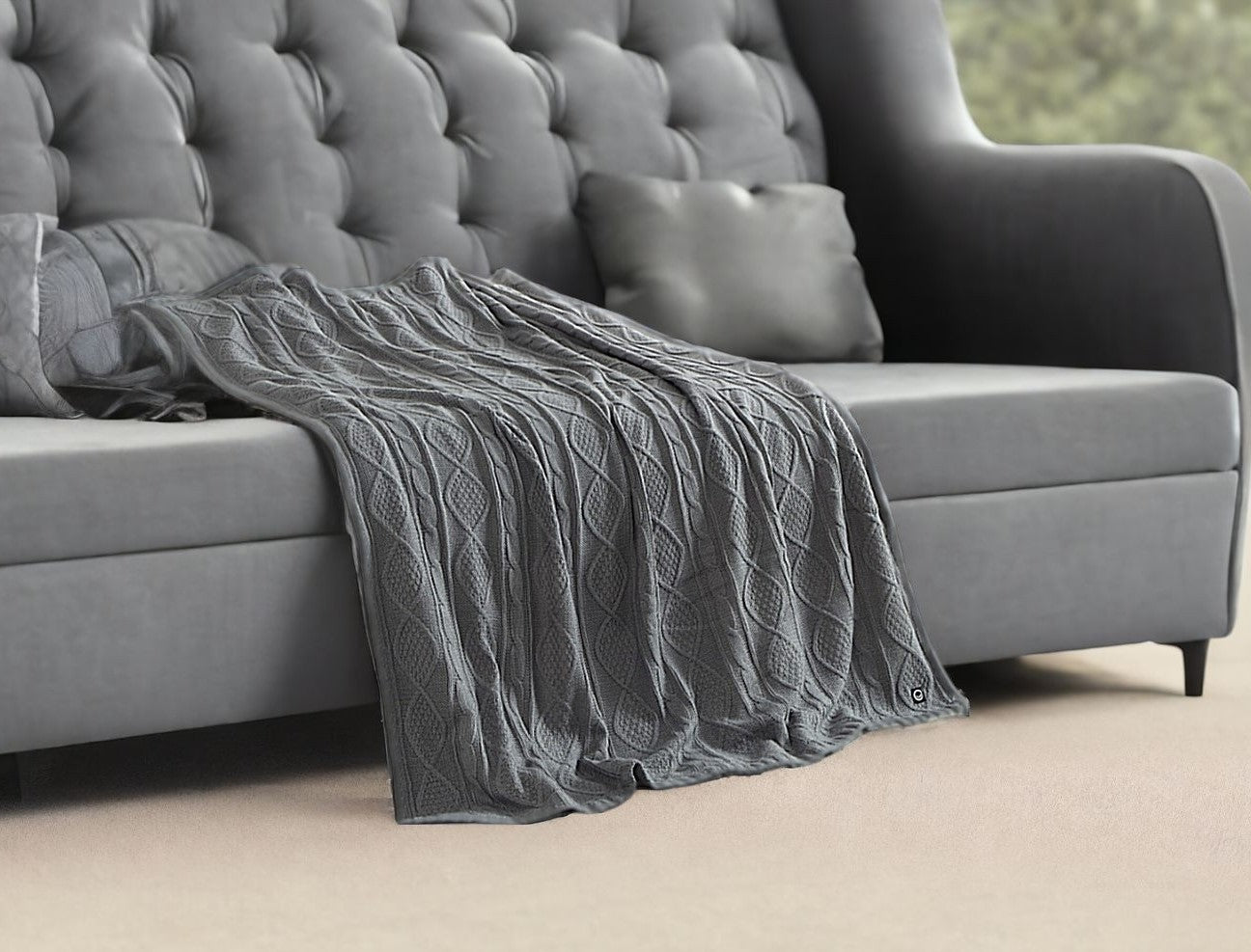 This light gray knitted acrylic solid color throw blanket is the perfect accent you've been searching for....