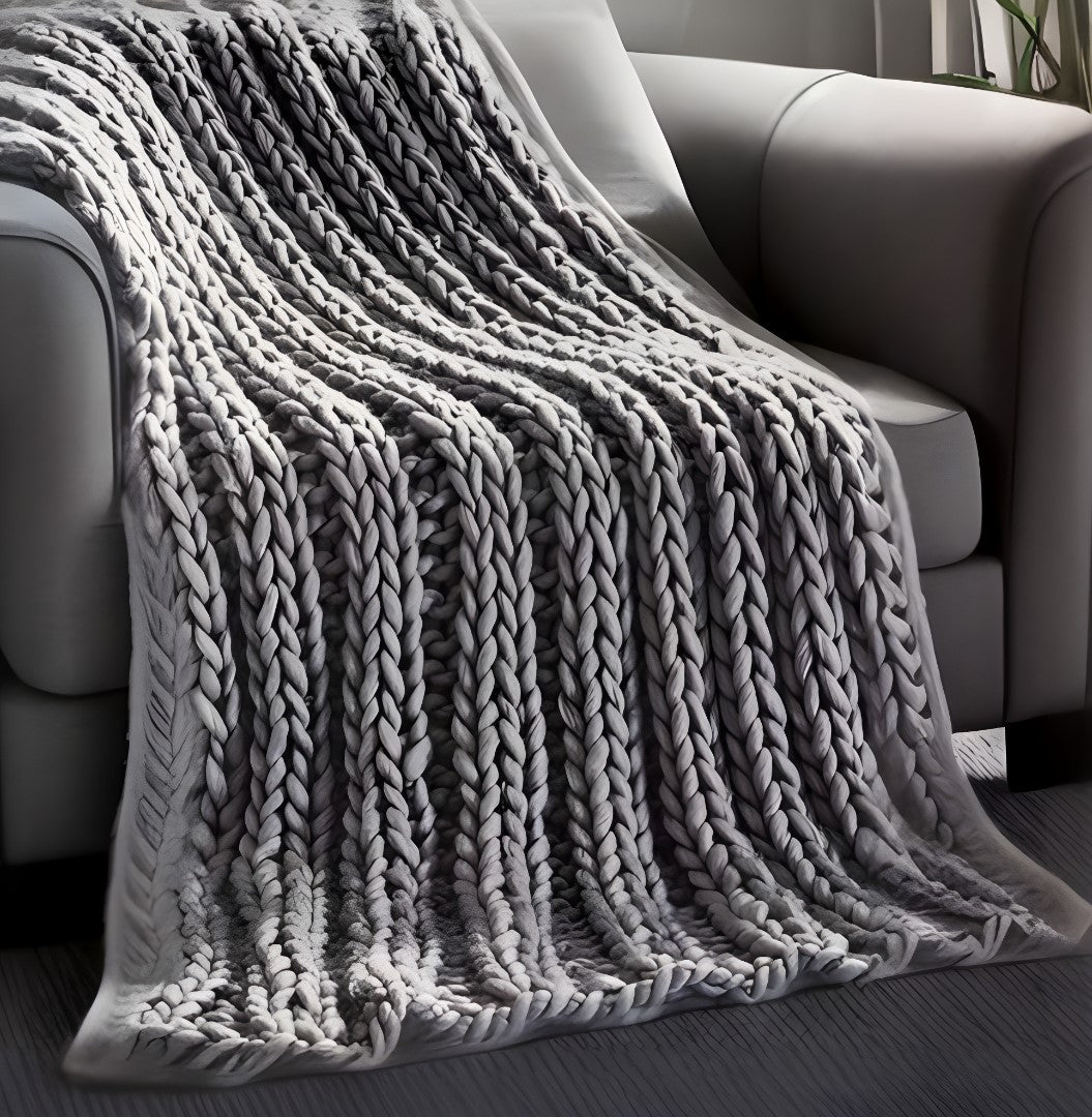 Light Gray Knitted Polyester Solid Color Throw Blanket