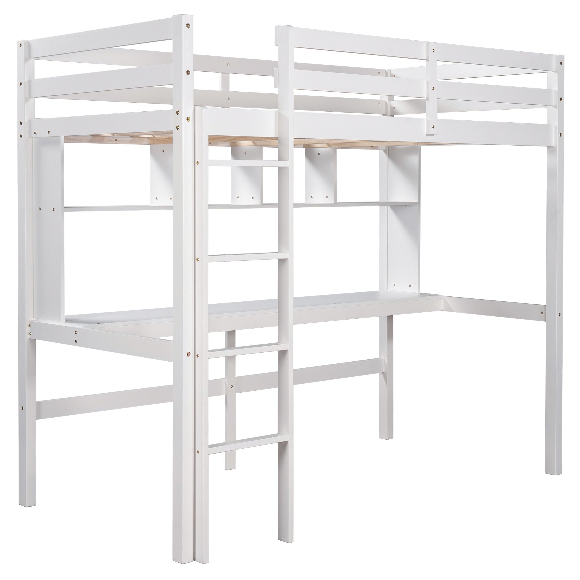 Minimalist White Twin Size Loft Bed with Built In Desk and Shelf