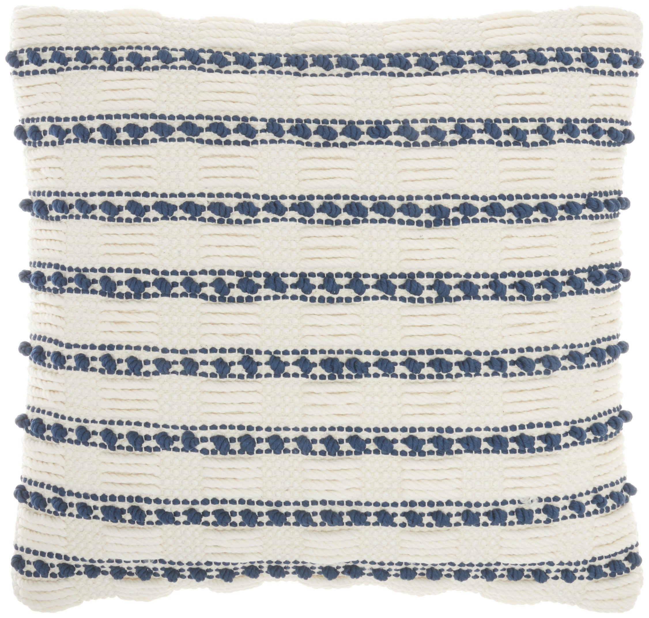 Brighten up your bedroom or living area with this Navy Blue and Ivory Textured Stripes Throw Pillow...