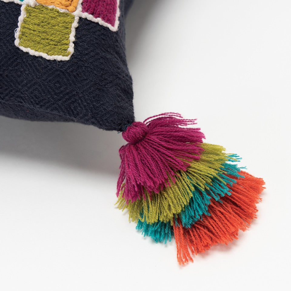 Navy Tribal Motifs Embroidered Throw Pillow
