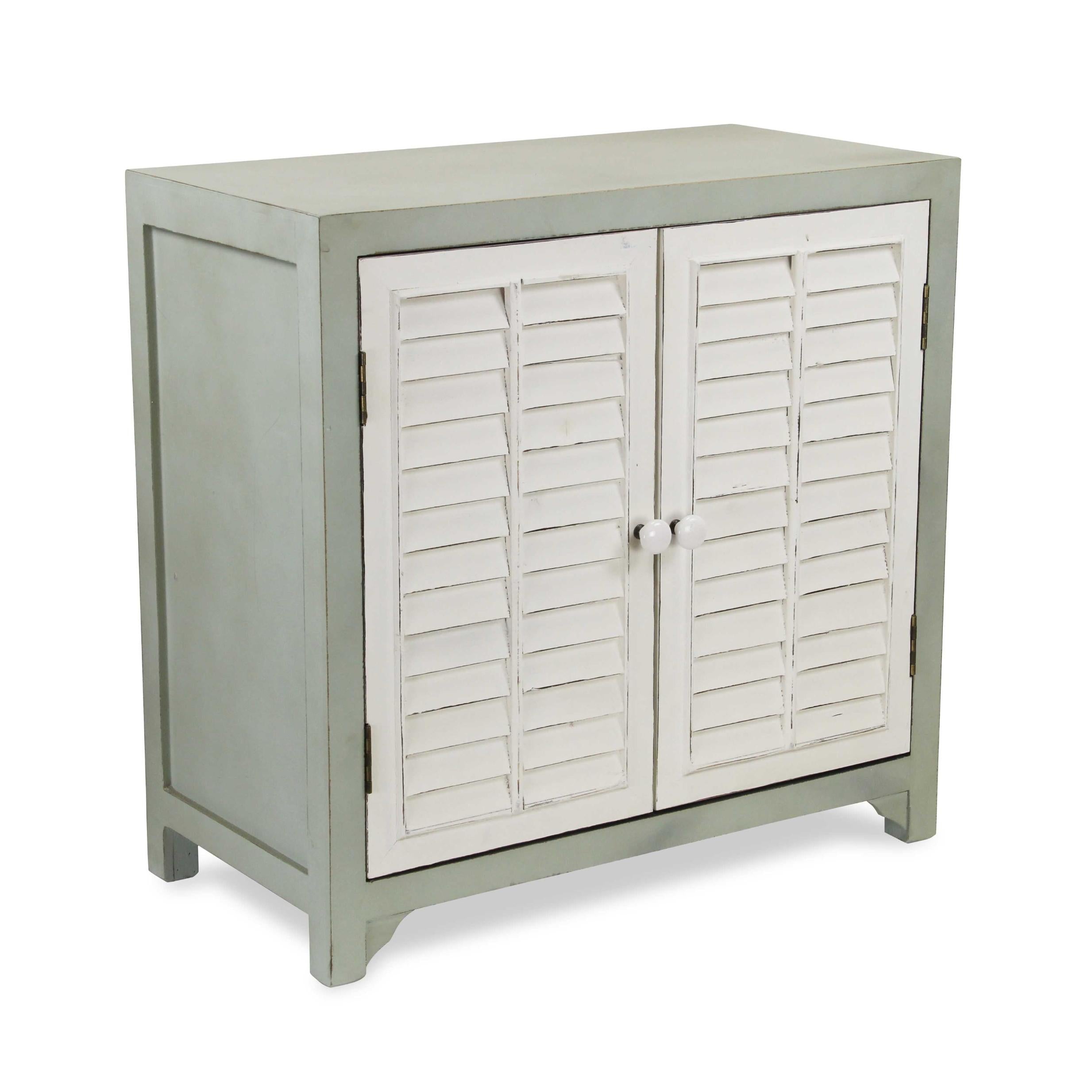 Bring those beachy vibes into your space with this Sea Salt Blue and White Shutter Accent Cabinet....
