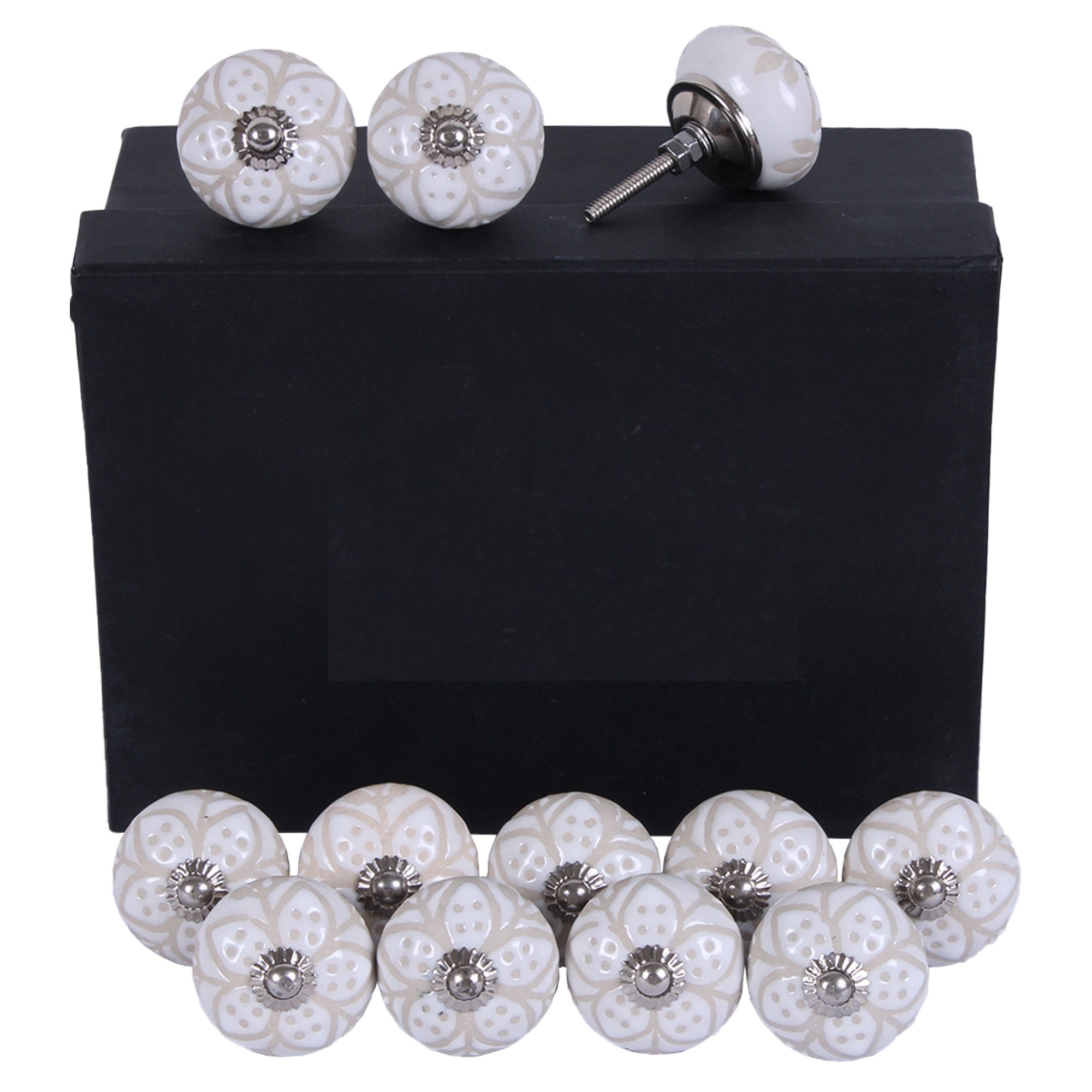 This Set of 12 Vintage Style Beige and White Floral Ceramic Knobs comes with a refined design...