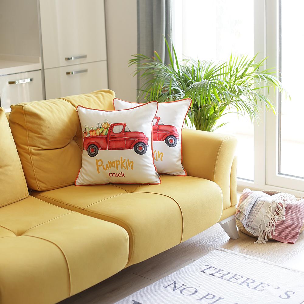 Set Of 2 18" Pumpkin Truck Throw Pillow Cover