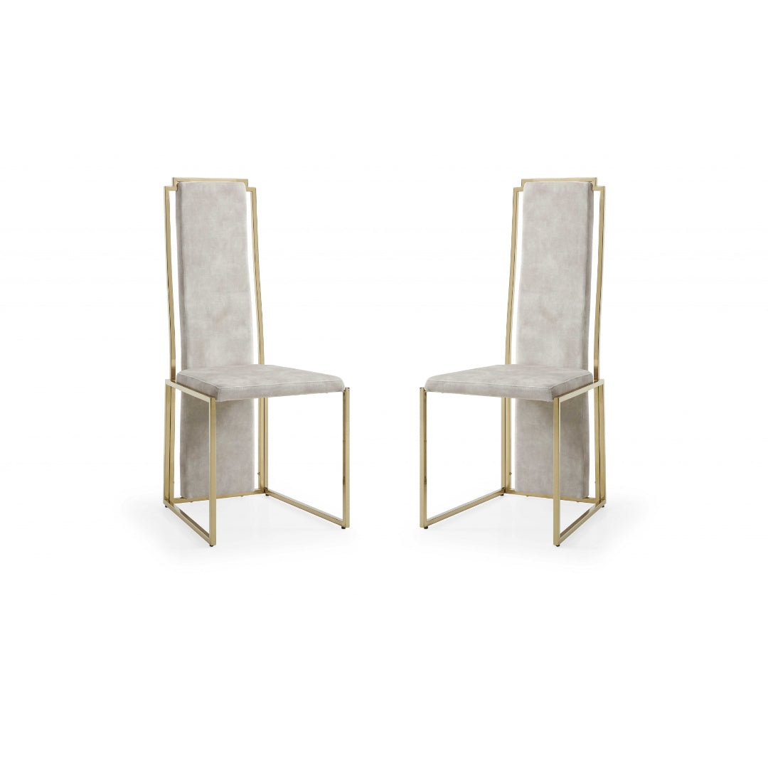 Set Of 2 Ultra Modern Beige Suede And Gold Dining Chairs