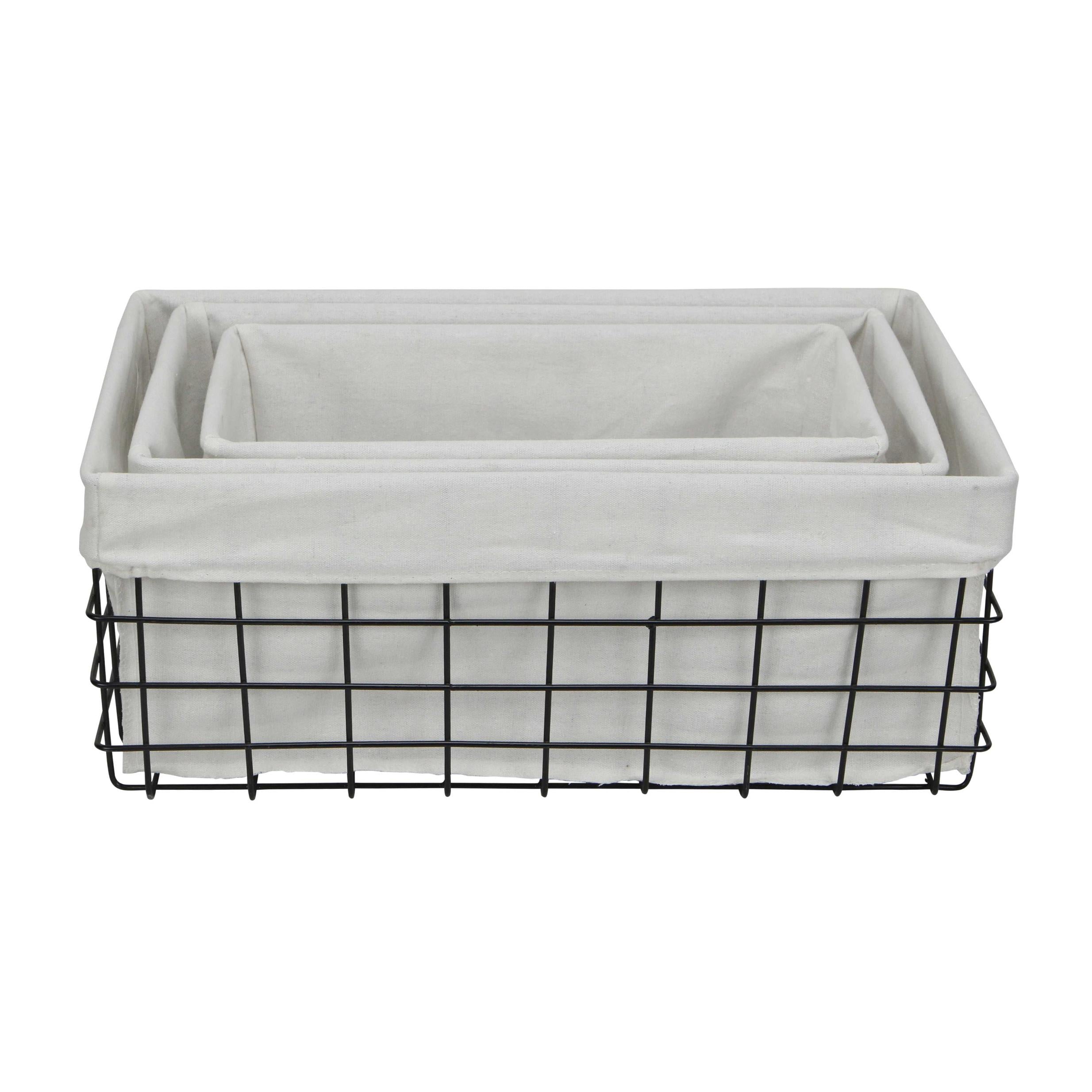 Set Of 3 Rectangular White Lined And Metal Wire Baskets