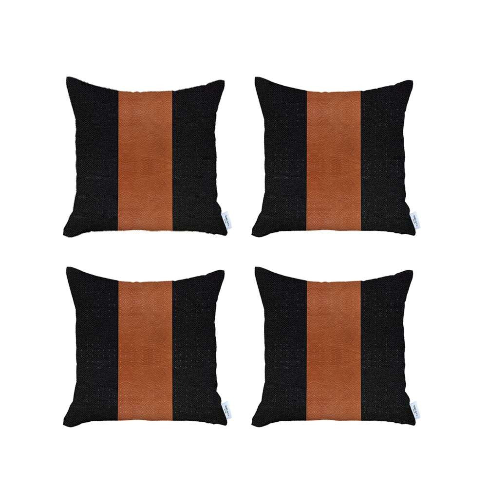Set Of 4 Black And Brown Faux Leather Pillow Covers