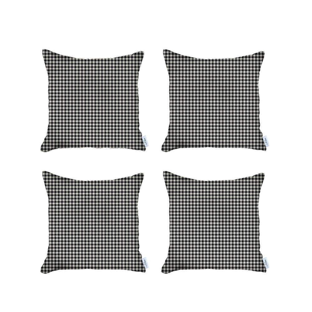 Set Of Four 18" X 18" Grey Polyester Houndstooth Zippered Pillow