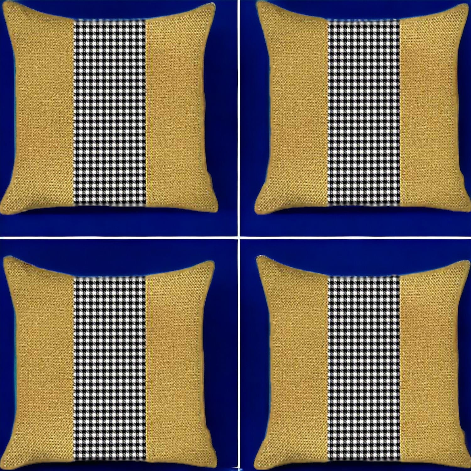 Set Of Four 18" X 18" Yellow And White Polyester Houndstooth Zippered Pillow