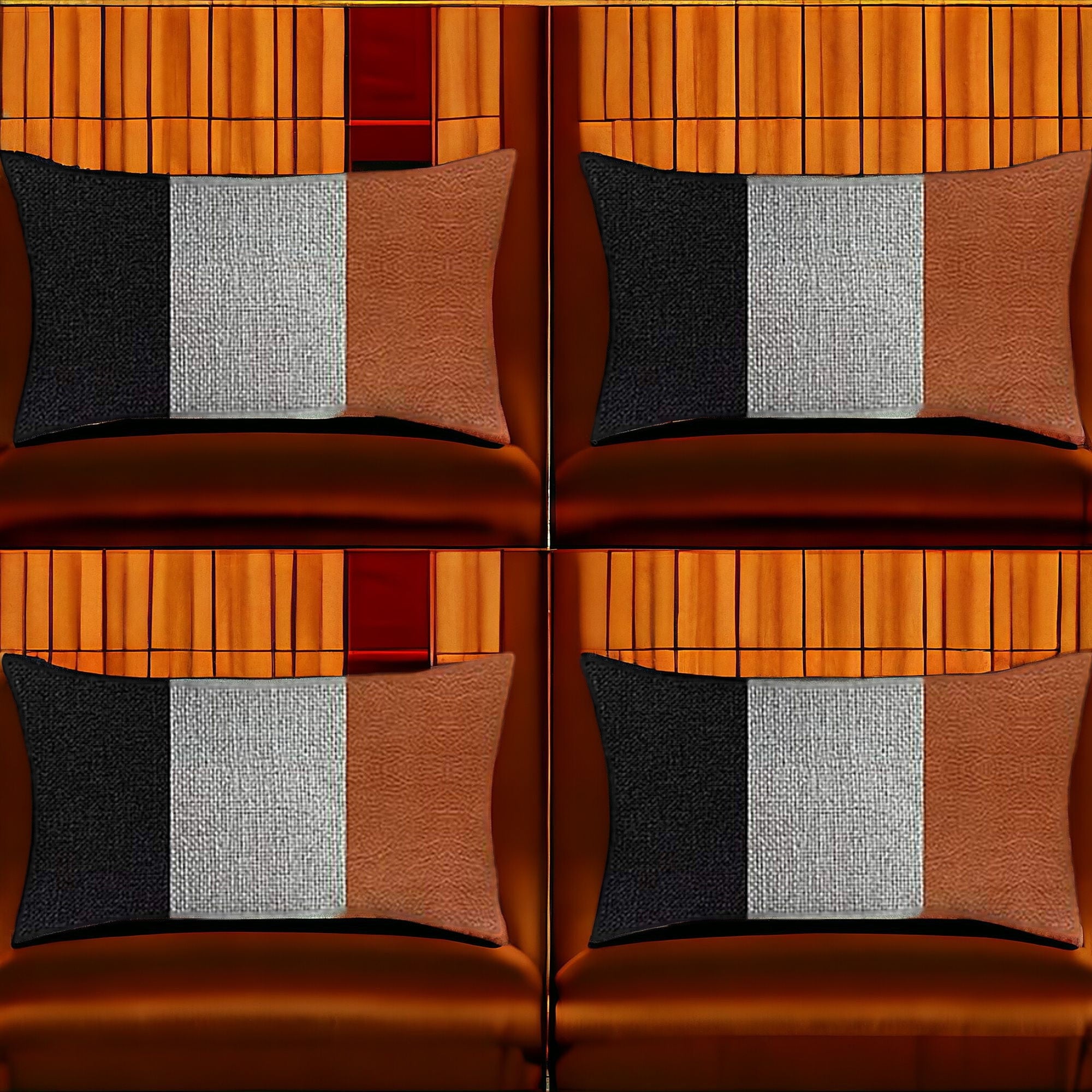 Set Of Four 20" X 12" Black Grey And Brown Polyester Geometric Zippered Pillow